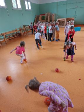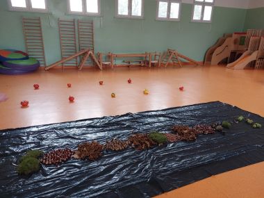 Zrealizowaliśmy pierwsze wrześniowe zadanie „Dzień Badaczy Przyrody”. Dzieci miały okazję budowania więzi emocjonalnej z przyrodą poprzez wykorzystanie edukacyjnej zabawy stymulującej rozwój zmysłów – „Jesiennej ścieżki sensorycznej”. Była to fajna okazja do uwrażliwiania ich na piękno natury. Ponadto przedszkolaki doskonaliły małą motorykę poprzez wykonanie pracy plastycznej „Dynia”.