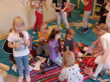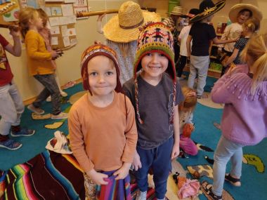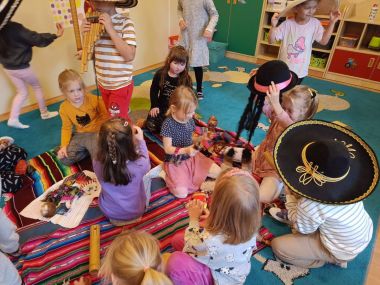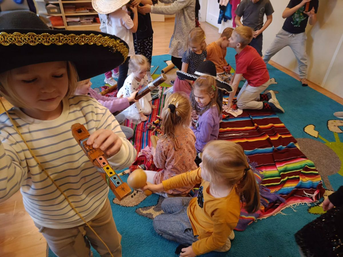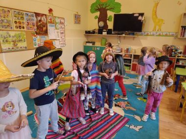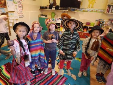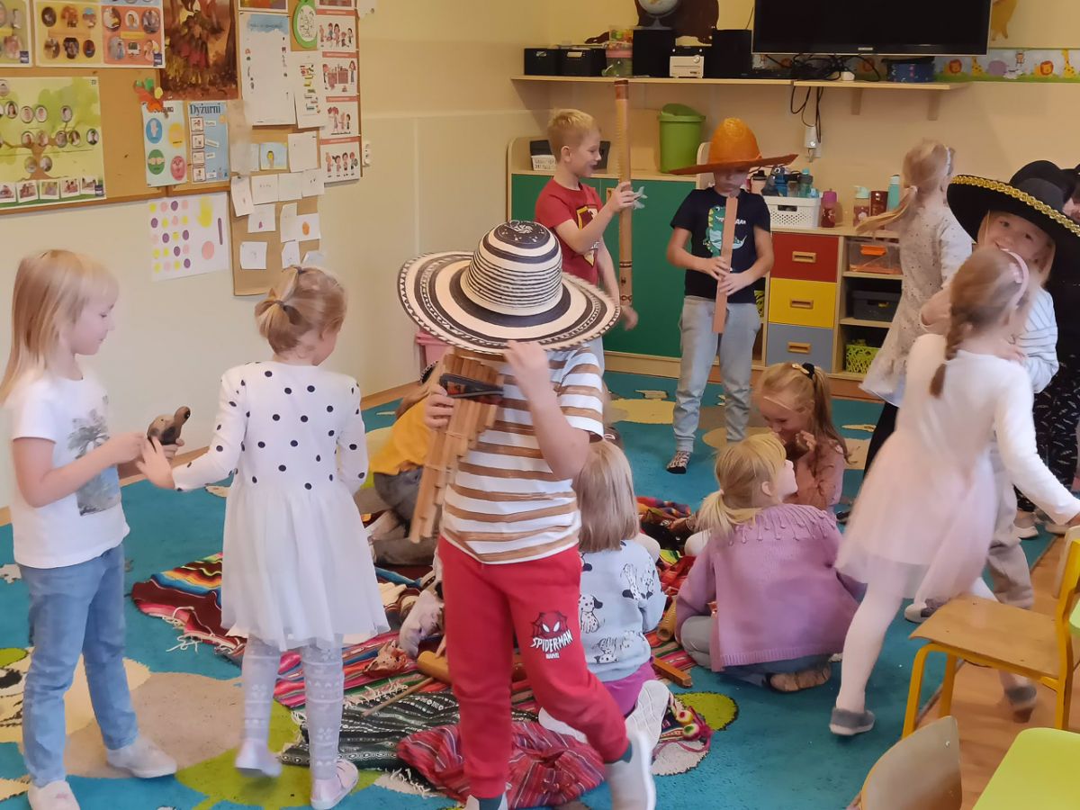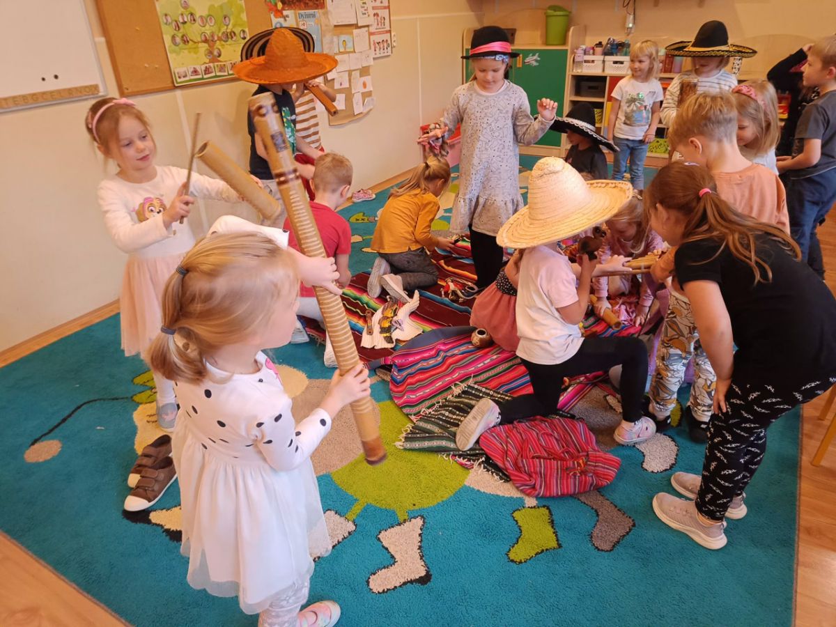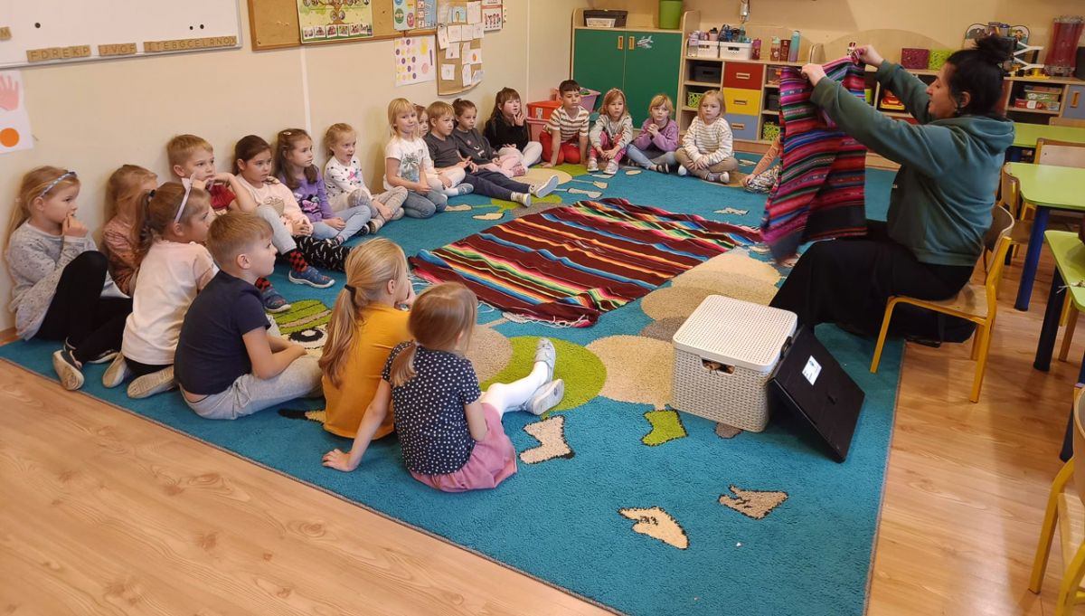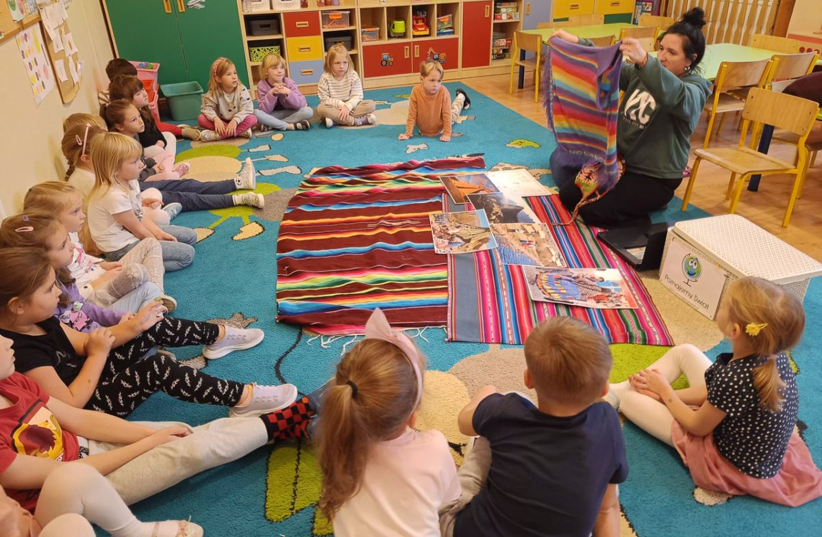 Na warsztatach „Między Nami Indianami”, które opowiadają o Indianach Ameryki Południowej i środkowej, dzieci miały okazje dowiedzieć się, jak dzisiaj wygląda życie Indian z Ameryki Południowej i Centralnej, zmierzyć indiańskie stroje – poncha i kapelusze. Chętne dzieci zagrały na indiańskich instrumentach takich jak marakasy czy guiro z Peru, Boliwii, Dominikany oraz zatańczyły do boliwijskiej muzyki, mogły też bawić się boliwijskimi zabawkami. Dzieci poznały różne grupy Indian Ameryki Południowej i Środkowej oraz ich ciekawe zwyczaje.