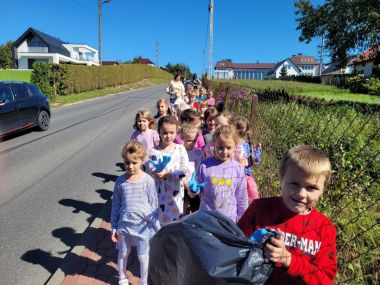 Wiek przedszkolny to okres wzmożonej aktywności poznawczej i emocjonalnej. Dlatego już w tym wieku należy dziecku ukazać potęgę i piękno otaczającego świata, wzbudzić w dziecku pozytywne uczucia takie jak odpowiedzialność wobec siebie i przyrody. Dzieci z naszego Przedszkola dołączyły do akcji "Sprzątanie Świata", zaopatrzeni w jednorazowe rękawiczki, worki na śmieci i pozytywnie zmotywowani wzniosłym celem przedsięwzięcia wyruszyły spod budynku przedszkola i zajęli się oczyszczaniem przydzielonego im terenu. Jesteśmy przekonani, że udział naszych wychowanków w akcji Sprzątania Świata z pewnością przyczyni się do ukształtowania wrażliwości na potrzeby środowiska naturalnego i potrzebę dbania o nasze wspólne dobro.