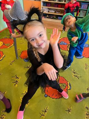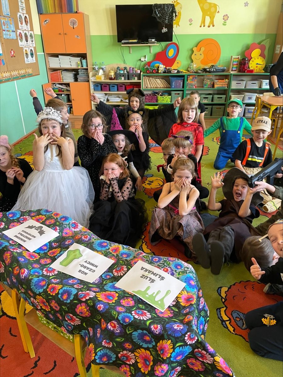 Przedszkolaki przebrały się za ulubione baśniowe postacie - wróżki, czarodziejów, superbohaterów, pająki, nietoperze oraz koty - był to wstęp do świetnej zabawy. Przedpołudnie upłynęło na wesołych tańcach, zabawach z wróżeniem i aktywnościach sensorycznych.