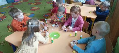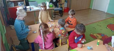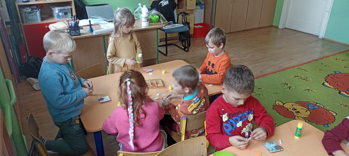 Tematem zajęć była jesień w lesie, ogrodzie i na łące. Rozmawialiśmy o tym co ją charakteryzuje i jak zachowują się jesienią zwierzęta. Następnie zrobiliśmy pracę plastyczno- techniczną pt.: "Jesienne magnesy".