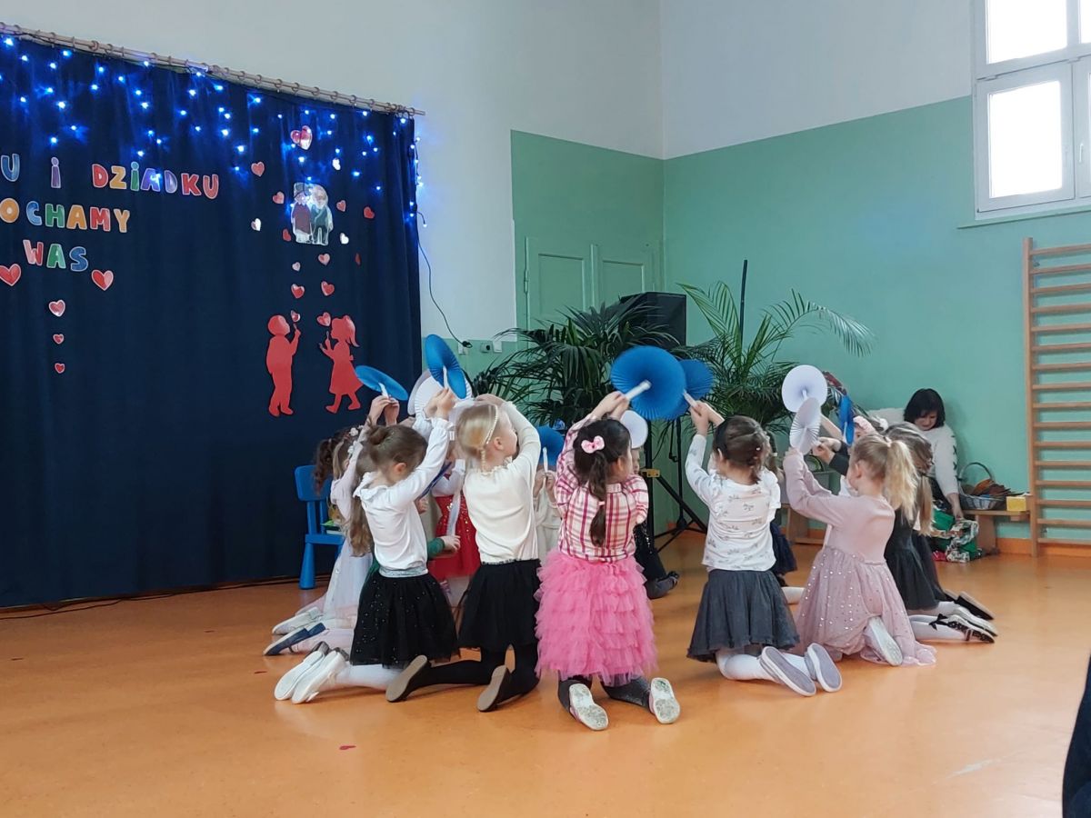15 stycznia 2025 r. przedszkolaki zaprezentowały program artystyczny z okazji Dnia Babci i Dziadka obejmujący grę na instrumentach, piosenki, wiersze i tańce oraz krótkie scenki teatralne. Dzieci zachwyciły wszystkich swoimi talentami, zaangażowaniem, prezentując kreatywne występy. Mali artyści z przejęciem odtwarzali swoje role, a czcigodni goście ze wzruszeniem odbierali czułe słowa kierowane pod ich adresem. Po części artystycznej przedszkolaki wręczyły własnoręcznie wykonane laurki dla ukochanych babć i dziadków. Wszyscy zebrani udali się na słodki poczęstunek. To był wyjątkowy dzień, pełen uśmiechu i radości.