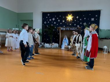 W tym roku dzieci wystąpiły w przedstawieniu jasełkowym dla swoich szczególnych gości Babć i Dziadków, którzy przybyli zobaczyć i podziwiać zdolności aktorskie swoich wnuków. Dzieci złożyły również życzenia kochanym Dziadkom recytując wiersze i wręczyły własnoręcznie wykonane upominki, które przypomną o tym szczególnym dniu.