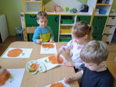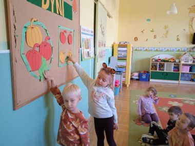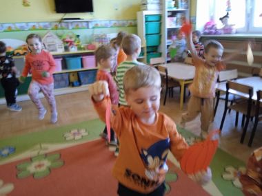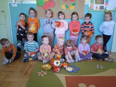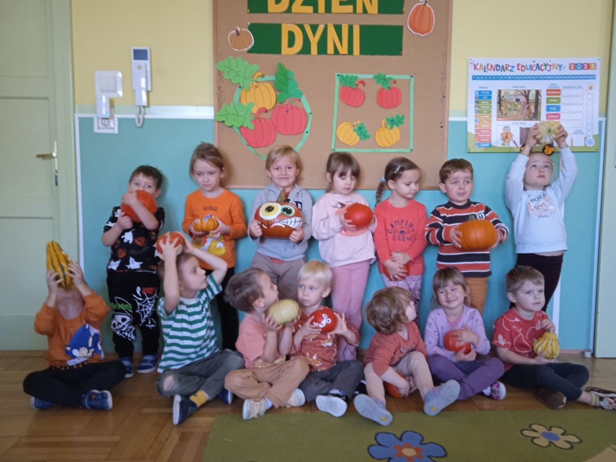 31 października obchodziliśmy "Dzień dyni". Dzieci dowiedziały się, że dynia jest bardzo zdrowym owocem i można z niej przygotować wiele potraw. Wzięły udział w licznych zabawach ruchowych z dynią. Świetnie bawiły się przy piosenkach i wyliczankach z dynią w roli głównej.