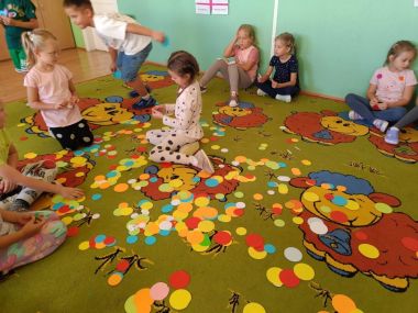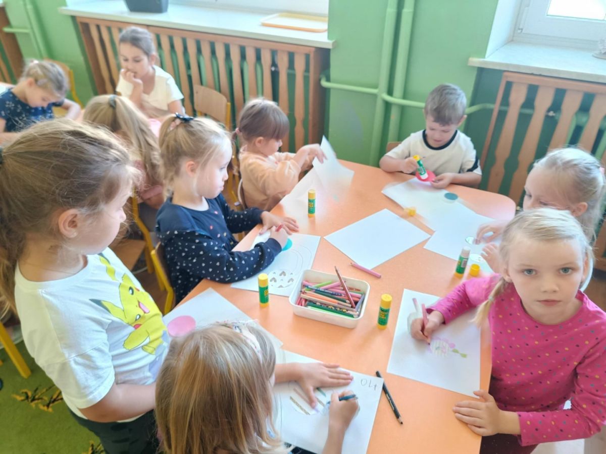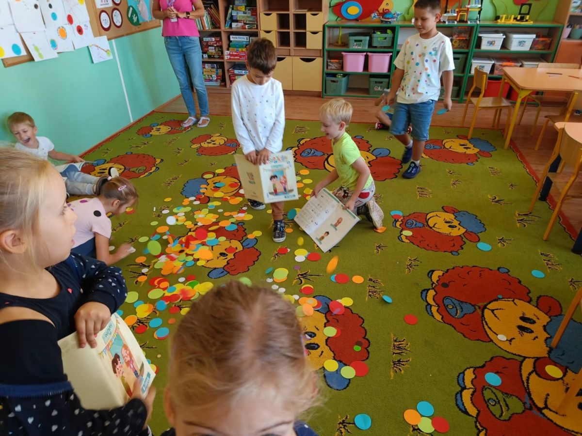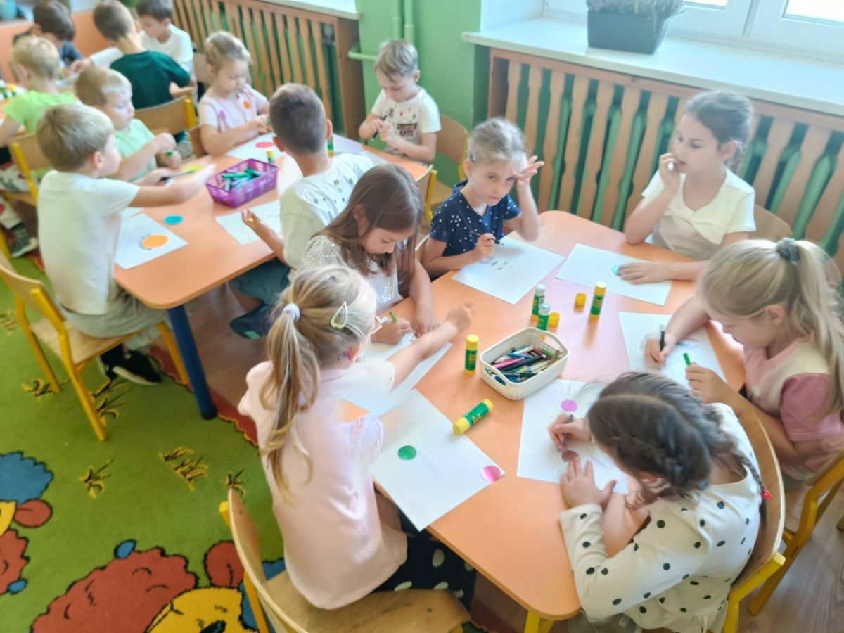 Nasze Przedszkolaki tego dnia przyszły ubrane w grochy, kropki i groszki. Przypominaliśmy sobie historię dziewczynki Vashti i tak jak ona odkrywaliśmy w sobie nasze talenty. Motywem przewodnim w dzisiejszych zabawach i pracach plastycznych była kropka, dziś także każdy przedszkolak opowiadał o swoich najcenniejszych dla siebie talentach.