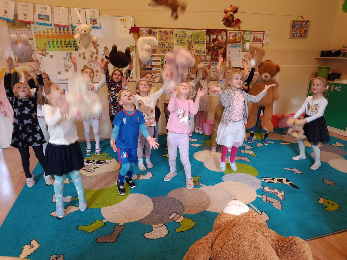 25 listopada świętowały w Dzień Pluszowego Misia. Wszystkie pluszaki i te duże i te małe miały swoje święto, które dzieci hucznie obchodziły. Było mnóstwo zabawy, radości, tańców nie zabrakło również życzeń przekazanych na „ uszko” oraz portretów misiów. Dzień zakończyliśmy niespodziankami, śpiewem i integracyjnymi grami, zabawy było co nie miara.