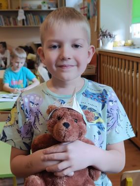 "Miś pluszowy chociaż mały, pocieszyciel doskonały.