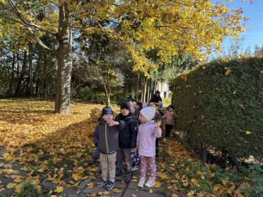 Podczas spaceru nie zabrakło też ruchu i zabawy – dzieci z radością biegały między drzewami na Os. Wojskowym, słuchały szelestu liści pod stopami i szukały śladów zwierząt przygotowujących się do zimy.