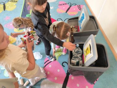22 kwietnia odchodziliśmy Międzynarodowy Dzień Ziemi. Podstawą zajęć było kształtowanie postaw proekologicznych przedszkolaków. Dla pobudzenia zmysłów dzieci zmierzyły się ze ścieżką sensoryczną, przygotowaną z odpadów o różnych fakturach. Przeprowadziliśmy rozmowę na temat recyklingu, segregacji i dbania o przyrodę. Zobaczyły, jak wygląda planeta - zaśmiecona, świetnie wiedziały co zrobić, jak posegregować śmieci, aby mogły cieszyć się czystą ziemią. Dzieci zrozumiały jak wiele zależy od nich i jak należy dbać o naszą planetę.