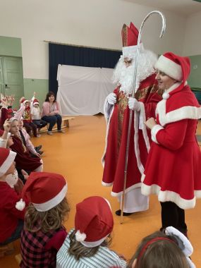 Św. Mikołaj został gorąco przywitany i zaproszony przez dzieci do zabawy i śpiewu. Miło spędzony czas uświetniły wspólne zdjęcia oraz prezenty wręczone każdemu dziecku przez Mikołaja.
