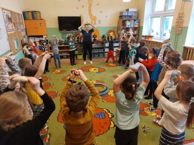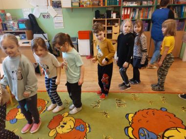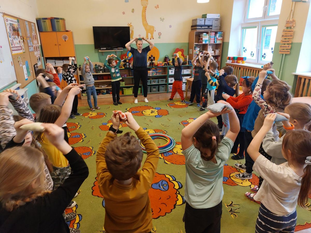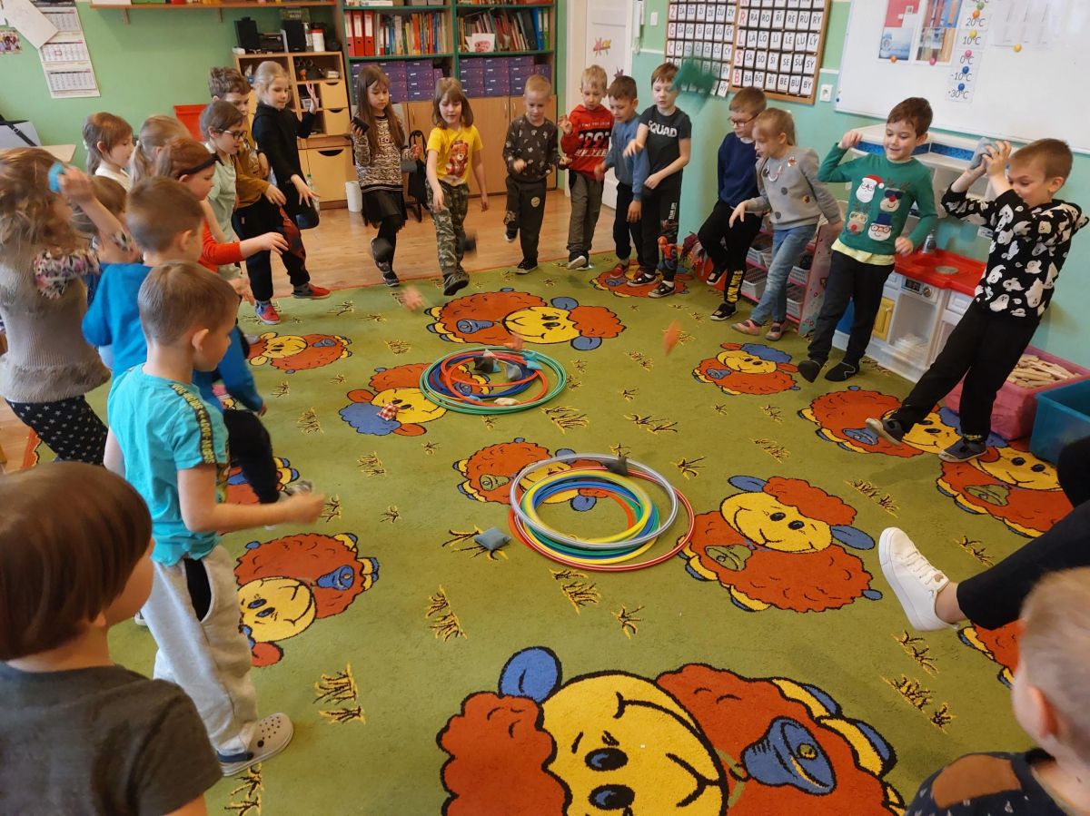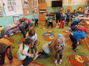 Dzieci miały okazję poćwiczyć motorykę dużą z panią pedagog, a przy okazji świetnie się bawiły.