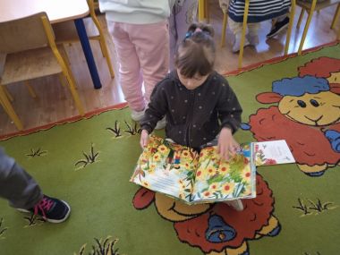 28 kwietnia odwiedziła nas pani bibliotekarka z Biblioteki Publicznej w Wegrzcach. W ramach akcji "Książka i róża" dzieci oglądały książki o kwiatach oraz wysłuchały opowiadania pt. "Ziarenko radości". Następnie wykonały piękne prace plastyczne.