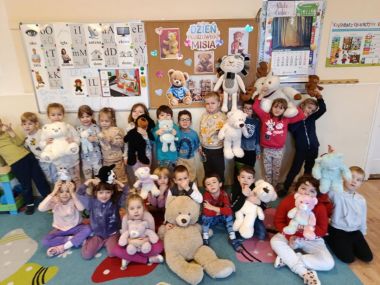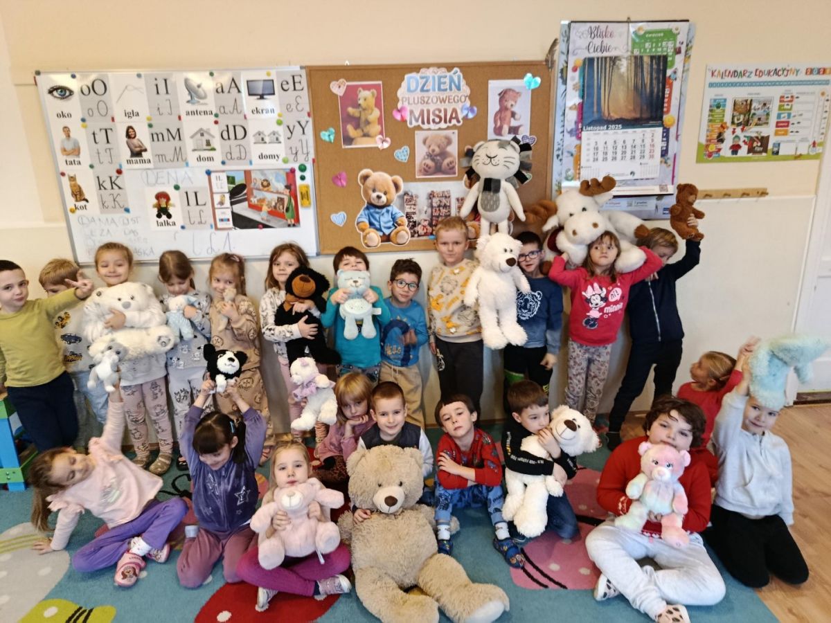 25 listopada obchodziliśmy ,,Dzień Pluszowego Misia". Wraz z naszymi ulubionymi pluszakami bawiliśmy się w ,,misiowe" zabawy. Poznawaliśmy różne gatunki niedźwiedzi, uczyliśmy się liczyć, śpiewaliśmy ,,misiowe'' piosenki i wyklejaliśmy misie z papieru.