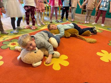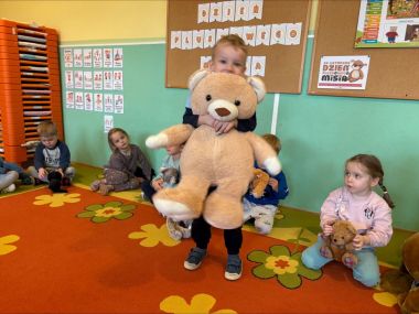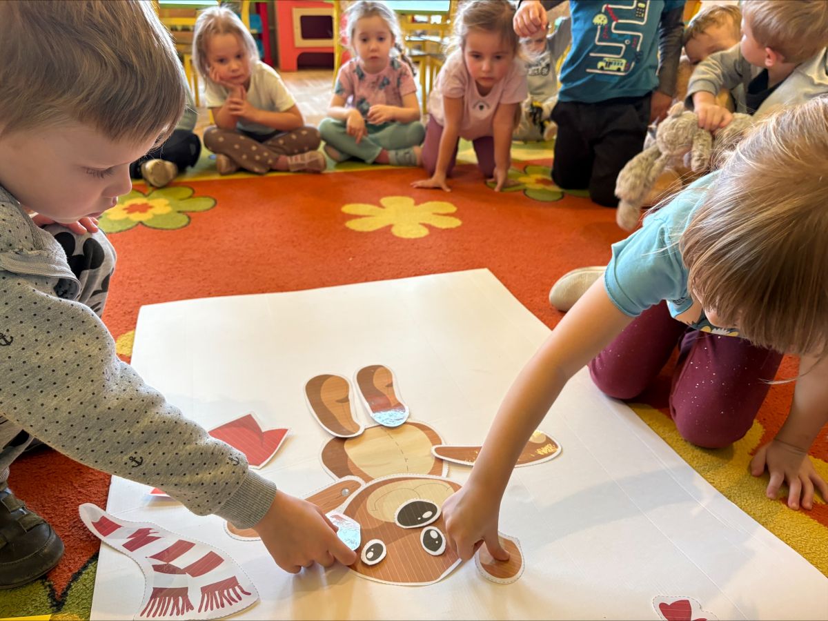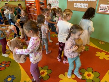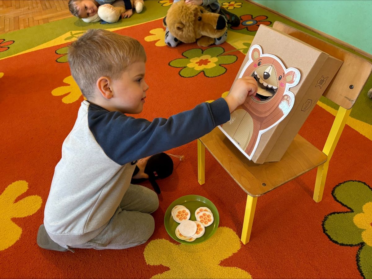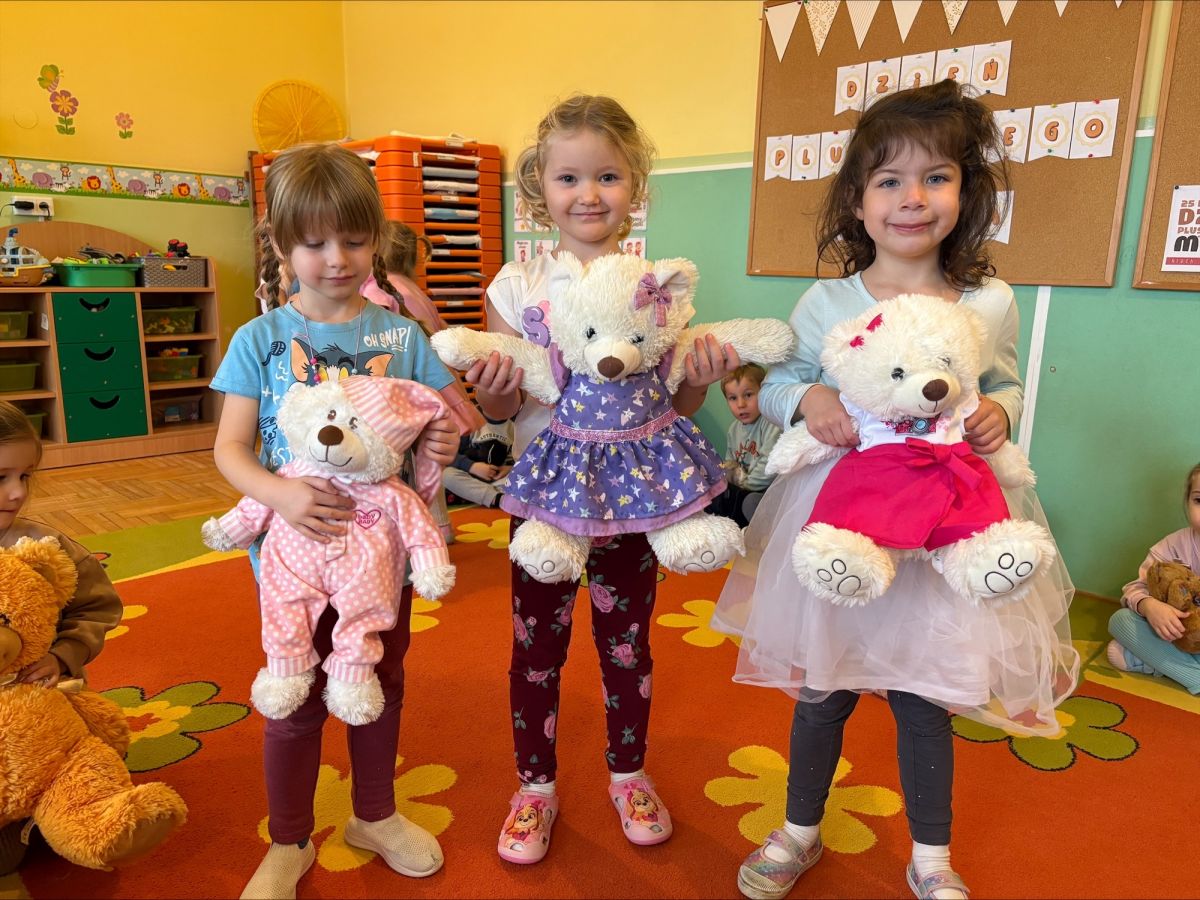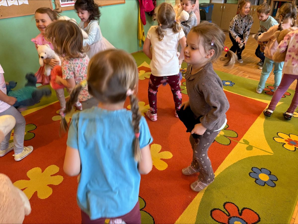 We wtorek, 25 listopada, świętowaliśmy w naszej grupie jedno z najbardziej mięciutkich i przytulnych wydarzeń w roku – Dzień Pluszowego Misia! Od rana w sali panowała wyjątkowa, ciepła atmosfera, a pluszowi przyjaciele w przeróżnych kolorach wypełniły naszą salę. Dzieci z ogromnym entuzjazmem uczestniczyły we wszystkich „misiowych” aktywnościach. Klasyfikowaliśmy misie według różnych cech – wielkości, koloru futerka, rodzaju materiału czy kształtu nosa. Okazało się, że każdy miś jest wyjątkowy! Nie zabrakło również muzyki – śpiewaliśmy misiowe piosenki oraz tańczyliśmy w rytm wesołych misiowych tańców, w których towarzyszyły nam nasze ulubione przytulanki. Podczas zajęć dzieci brały udział w zabawach matematycznych z misiami – liczyliśmy je, porównywaliśmy, szacowaliśmy, a nawet tworzyliśmy misiowe zbiory. Udało się też nam nakarmić misia miodowymi plasterkami. Dużo radości sprawiło także składanie misia z przygotowanych elementów, co pozwoliło dzieciom poćwiczyć spostrzegawczość i kreatywność.