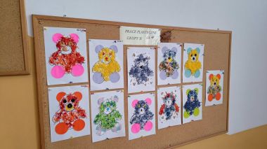 Każde dziecko przyszło do przedszkola ze swoim "milutkim przyjacielem". Dzieci poznały historię święta misia, oglądały prezentację przedstawiającą ilustracje i imiona różnych misiów następnie wykonywały prace plastyczne.