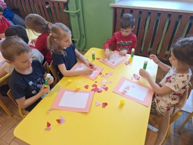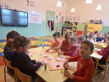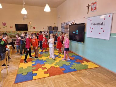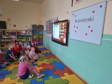 14 lutego obchodziliśmy w naszej grupie Walentynki. Poznaliśmy historię św. Walentego oraz wzięliśmy udział w zabawach o tematyce walentynkowej.