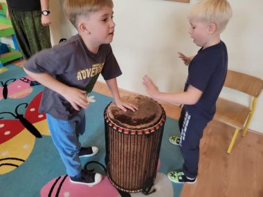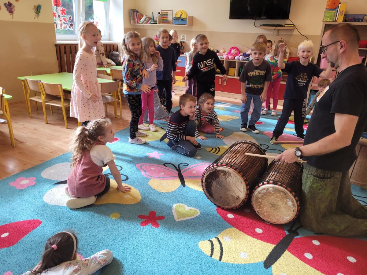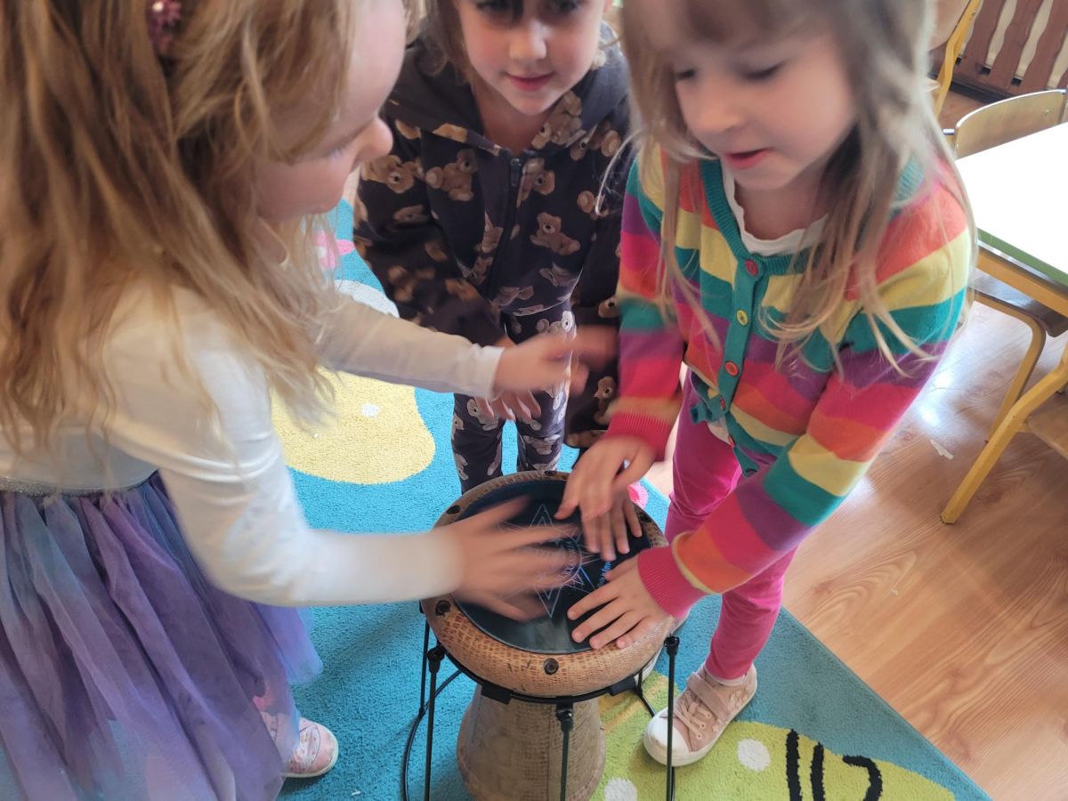Warsztaty bębniarskie, które odbyły się 22 października w naszej grupie były fantastyczną okazją do odkrywania świata rytmu i muzyki. Dzieci miały możliwość zagrania na bębnach tworząc wspólnie dynamiczne rytmy. Zajęcia były świetną okazją do integracji grupy oraz budowania pozytywnych relacji między sobą. Na zakończenie każde dziecko otrzymało dyplom oraz wykonało małą grzechotkę.