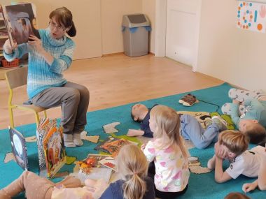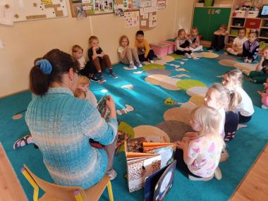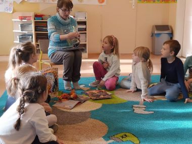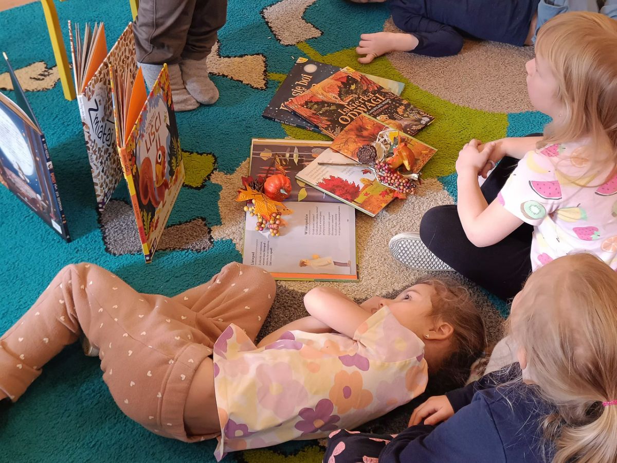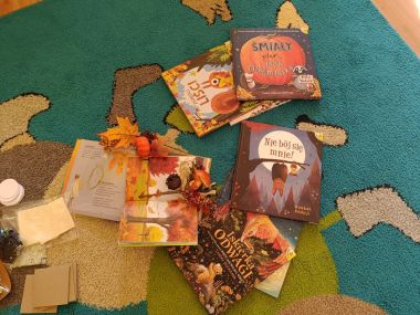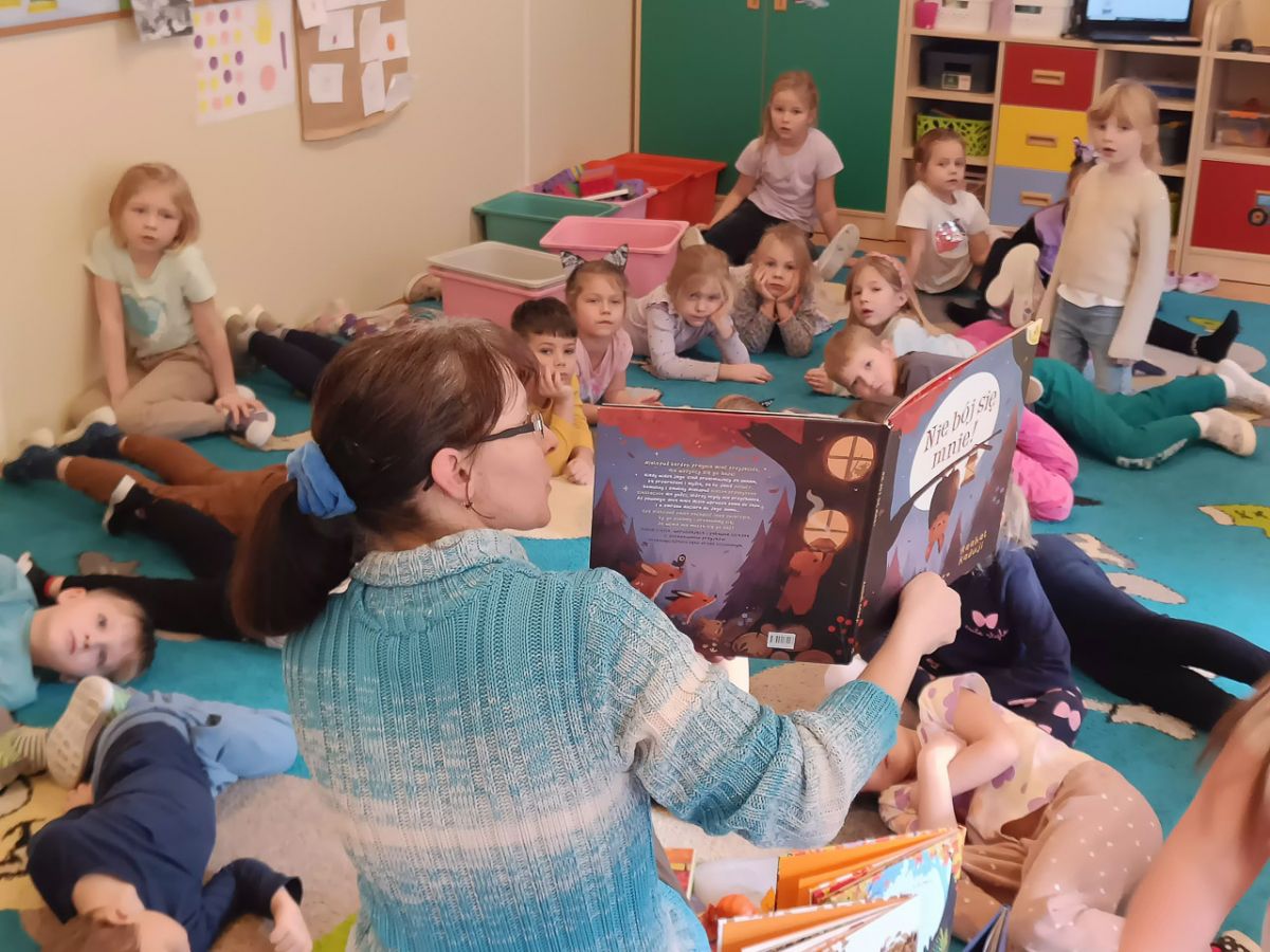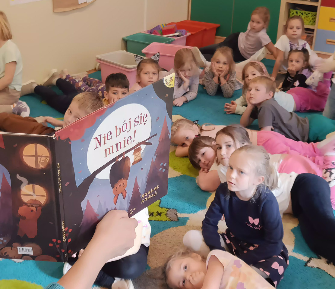 22 listopada odwiedziła nas p. Natalia, bibliotekarka z naszej zaprzyjaźnionej biblioteki w Węgrzcach. Przeczytała nam książkę pt. "Nie bój się mnie", następnie wykonaliśmy notesik ozdabiając go jesiennymi elementami w nawiązaniu do książki o nietoperzu.