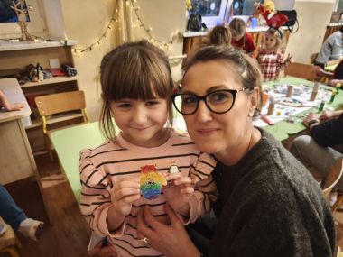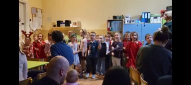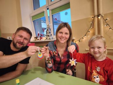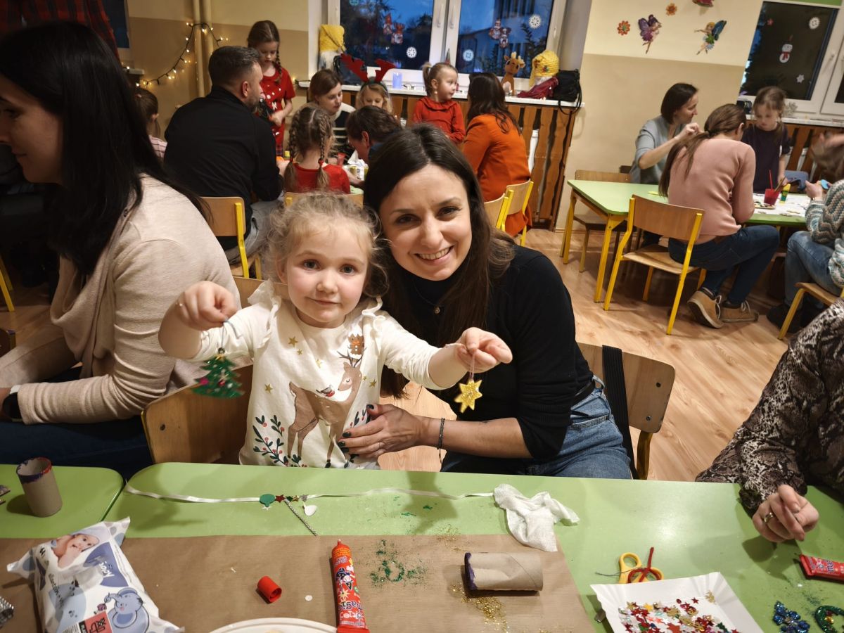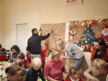 10 grudnia w miłej atmosferze odbyły się warsztaty świąteczne z rodzicami ,,Wokół choinki". Był to czas zabawy i pracy, ale również integracji. Nasze warsztaty umilił występ wokalny dzieci, a po nim nastąpiła praktyczna część warsztatów- wykonanie ozdób choinkowych. W rodzinnej atmosferze powstały pełne uroku ozdoby i dekoracje świąteczne, np. pawie oczka. Rodzice i dzieci z wielkim zapałem wykonywali piękne prace, wykazując się przy tym pomysłowością i kreatywnością. Wspólna twórczość w atmosferze zabawy, zaangażowanie, a co najważniejsze czas, który dzieci spędziły z rodzicami to cenne doświadczenie dla obu stron. Efekty swojej twórczej aktywności przedszkolaki zaniosły do swoich domów, aby udekorować swoje choinki.