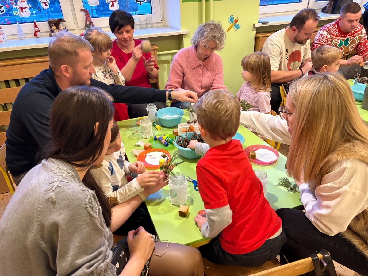 Święta Bożego Narodzenia to szczególny czas. I właśnie po to, aby i w naszym przedszkolu zagościła świąteczna atmosfera 9 grudnia zorganizowaliśmy warsztaty Bożonarodzeniowe z udziałem rodziców. Wspólna twórczość w atmosferze zabawy, zaangażowanie, przeżyte emocje, a co najważniejsze czas, który dzieci spędziły z rodzicami to bardzo cenne doświadczenie dla obu stron. Za co z całego serca dziękujemy.