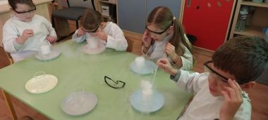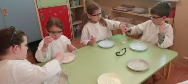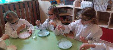 W piątek 9 maja w przedszkolu odbyły się warsztaty chemiczne, w których uczestniczyły najstarsze grupy przedszkolne. Dzieci miały okazję eksperymentować, samodzielnie działać i wysnuwać chemiczne wnioski z obserwacji.