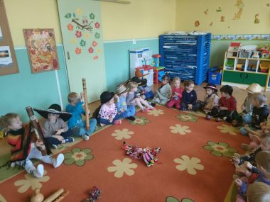 25 listopada w Grupie II odbyły się warsztaty z podróżnikiem pt. Między nami Indianami. To już kolejne warsztaty z projektu Kolory Kultury: Odkrywamy Świat Razem. Dzieci poznały życie Indian amerykańskich, ich stroje, zajęcia, instrumenty i zabawki. Mogły również przebrać się w oryginalne stroje i nakrycia głowy.