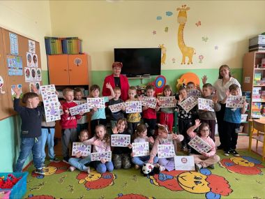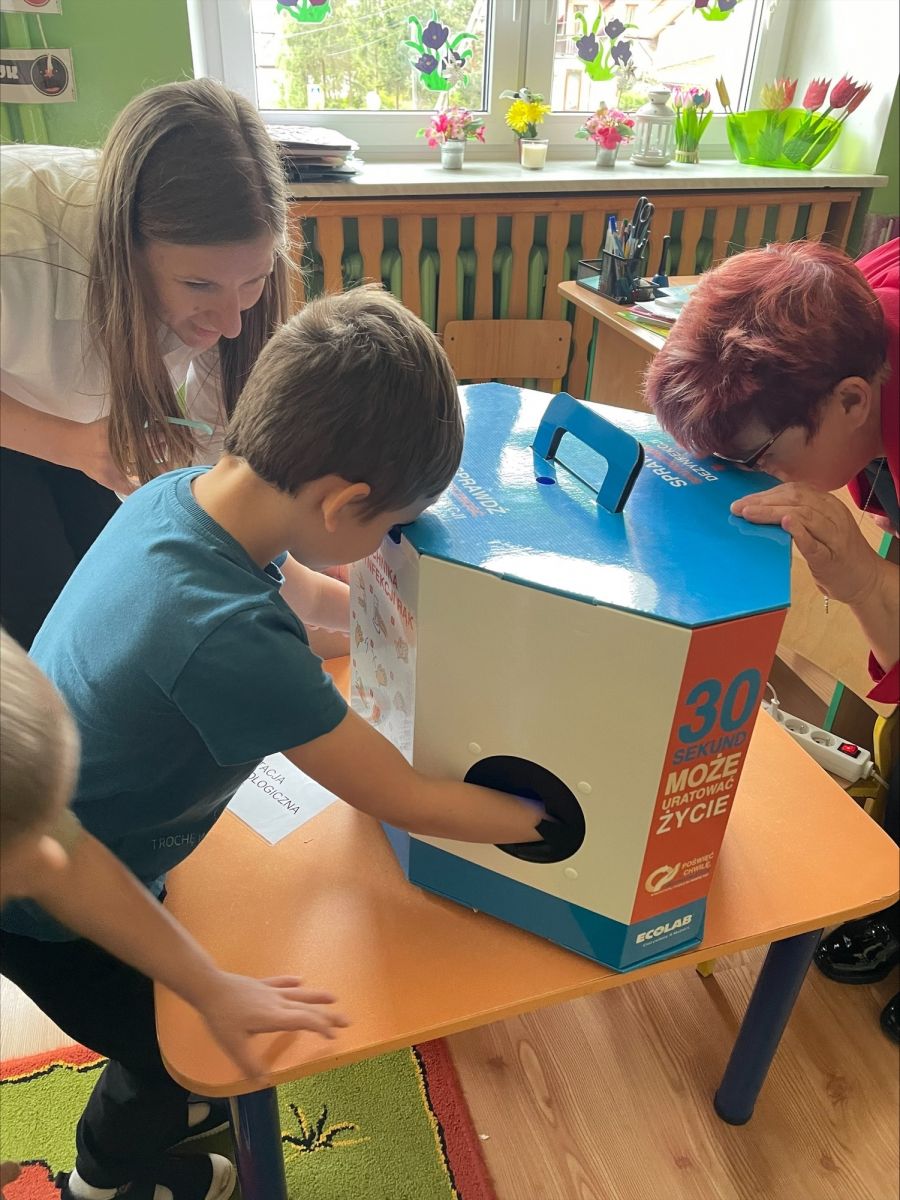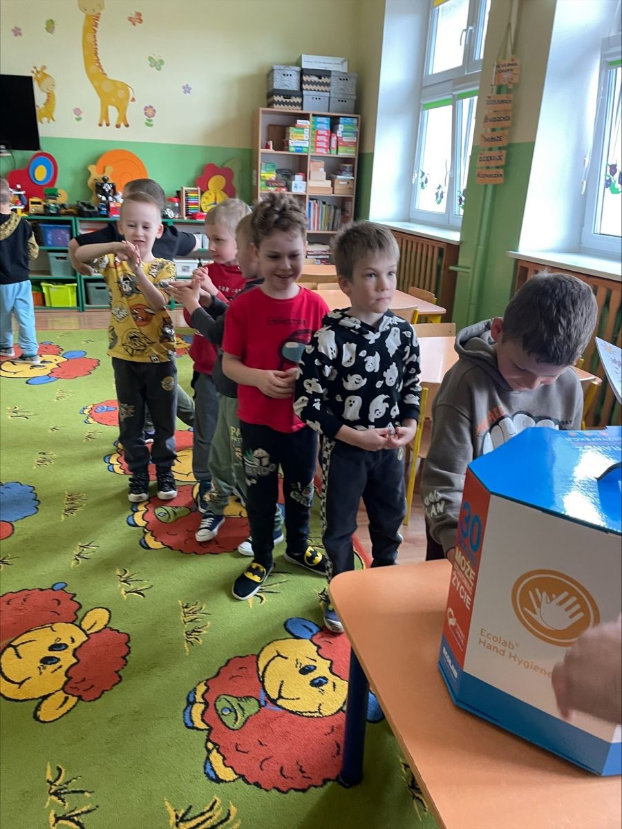 Dzieci dowiedziały się, jakie zachowania są pożyteczne dla zdrowia człowieka oraz miały okazję doskonalić prawidłowe mycie rąk z wykorzystaniem specjalnego urządzenia ze światłem UV.