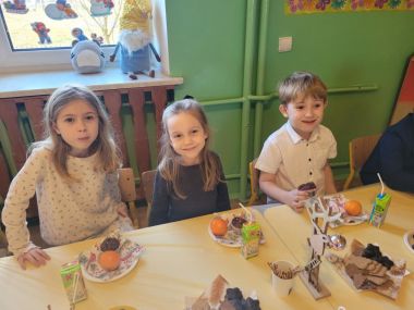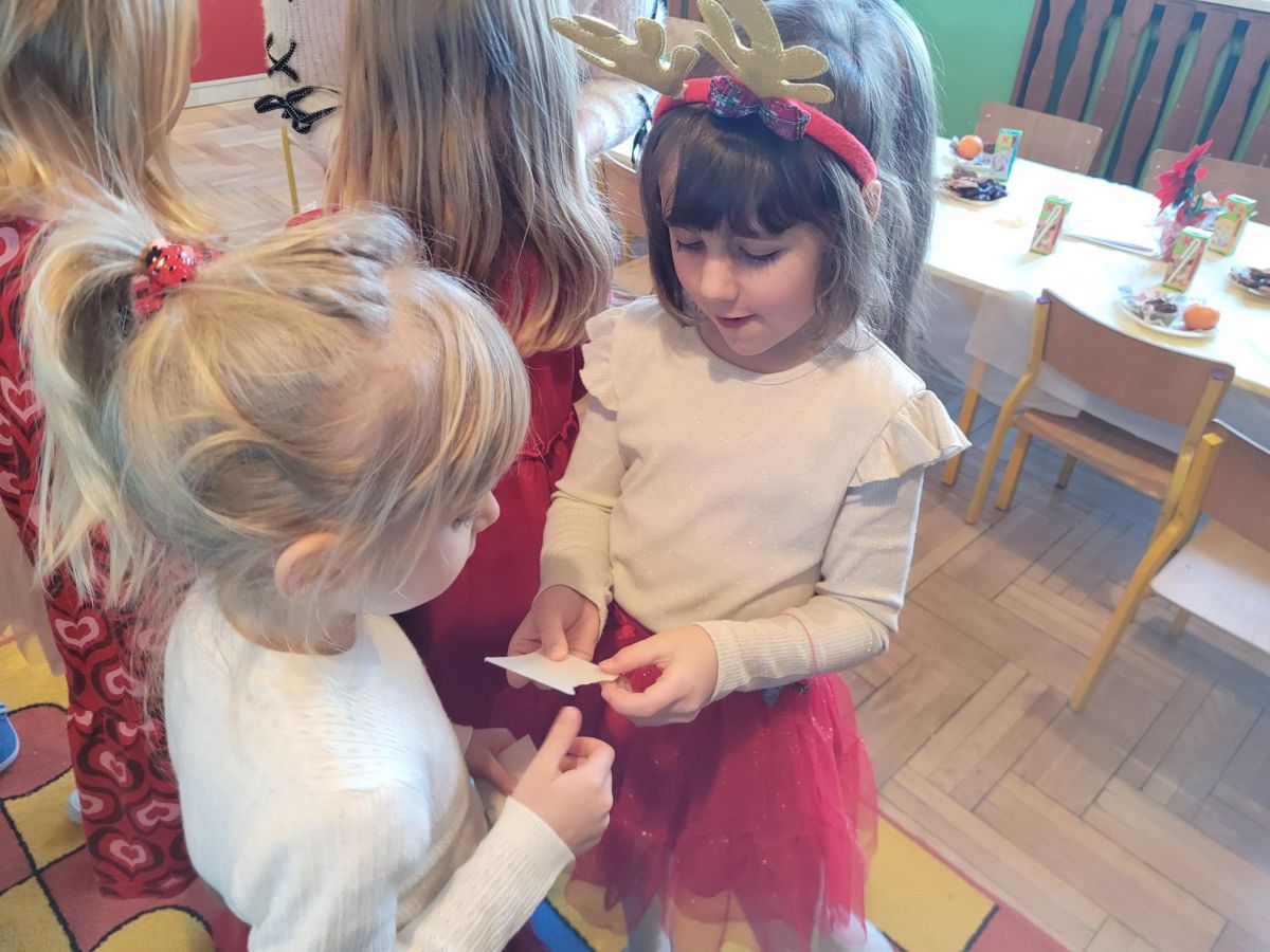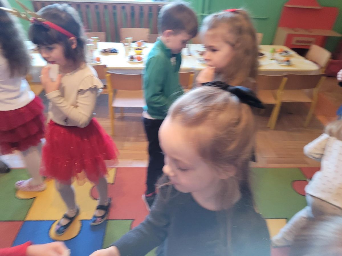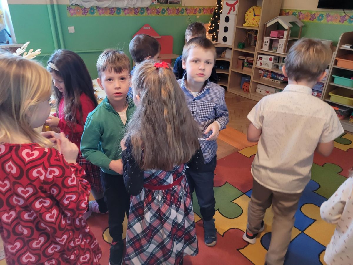 W piątek 19 grudnia przedszkolaki świętowały Wigilię, przygotowaną przez Rodziców. Dzieci podzieliły się opłatkiem składając sobie świąteczne życzenia, po czym zasiadły wspólnie do stołu. Po Wigilii uczestniczyły w przedstawieniu Jasełkowym w wykonaniu dzieci z grupy VI, na zakończenie wszyscy przy akompaniamencie gitary wspólnie z Panią Madzią pięknie zaśpiewali kolędy i pastorałki świąteczne.