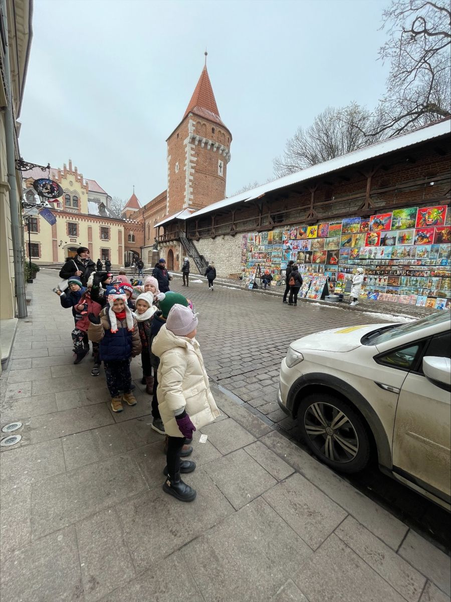 W piątek, 1. grudnia grupa VI odwiedziła oddział Muzeum Narodowego w Krakowie - Muzeum Czartoryskich, gdzie wraz z przewodnikiem obejrzały wystawę stałą oraz wzięły udział w lekcji muzealnej "Jak powstaje arcydzieło? W pracowni mistrza". Przedszkolaki zastanawiały się, kim jest artysta i co sprawia, że dzieło jest arcydziełem. Dzieci miały okazję poznać narzędzia i barwniki stosowane przez malarzy i rzeźbiarzy. Dane im było także obejrzeć najdroższy i najlepiej strzeżony obraz w Polsce - "Dama z gronostajem" L. da Vinci.