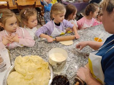 Po przyjeździe czekało na nas tam wiele atrakcji, od razu zostaliśmy zaproszeni na pyszne śniadanie, następnie przygotowywaliśmy pachnące rogaliki z powidłami, udaliśmy się na spacer, podczas którego podziwialiśmy sady, grządki oraz liczne zwierzęta z gospodarstwa domowego. Oprócz tych atrakcji, czekało nas kiszenie kapusty, karmienie zwierząt i składanie uli.