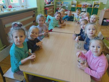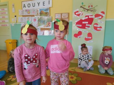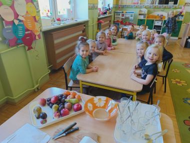 ,,Witaminki, witaminki, Dla chłopczyka i dziewczynki, Wszyscy mamy dziarskie minki, Bo zjadamy witaminki"
