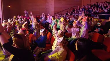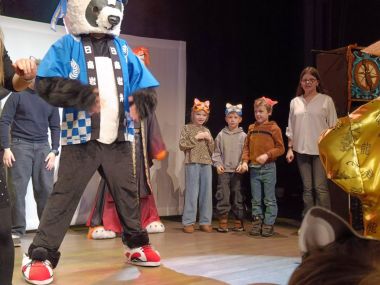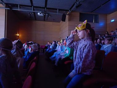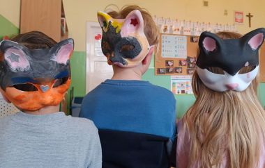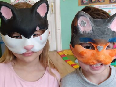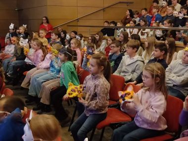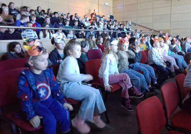 Dużą atrakcją były maski, które dzieci otrzymały przed wydarzeniem i samodzielnie je ozdobiły, następnie służyły jako nasze rekwizyty w czasie przedstawienia. Wróciliśmy zachwyceni spektaklem.