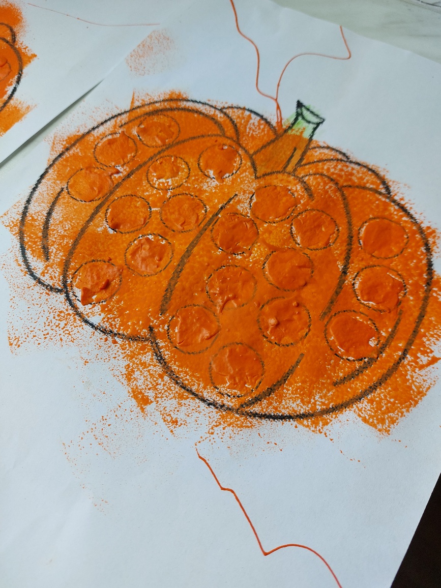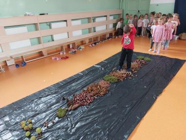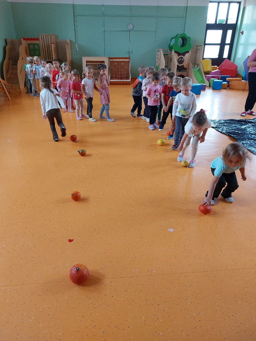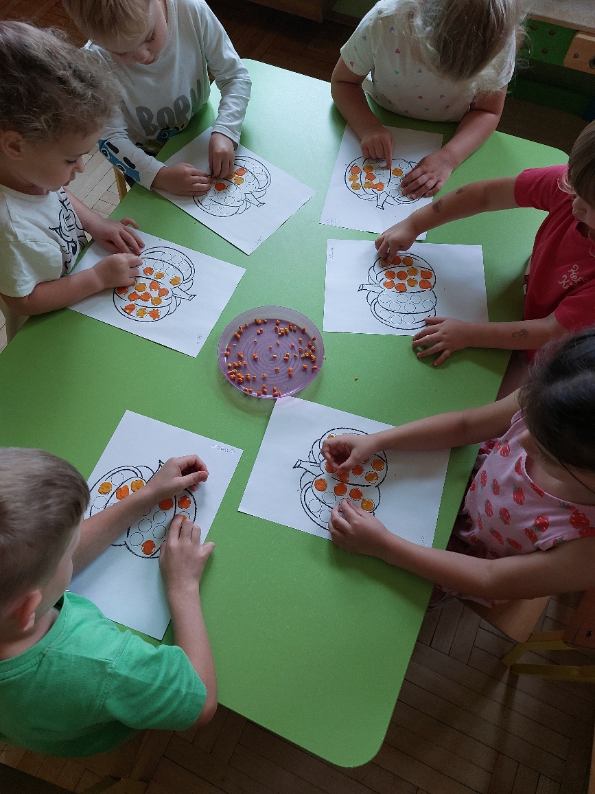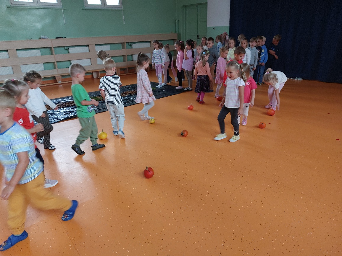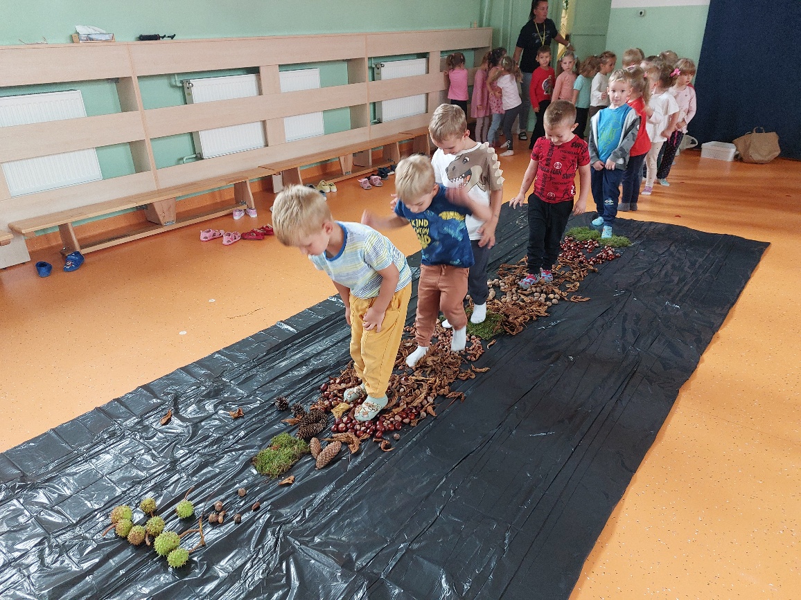 Zrealizowaliśmy pierwsze wrześniowe zadanie „Dzień Badaczy Przyrody”. Dzieci miały okazję budowania więzi emocjonalnej z przyrodą poprzez wykorzystanie edukacyjnej zabawy stymulującej rozwój zmysłów – „Jesiennej ścieżki sensorycznej”. Była to fajna okazja do uwrażliwiania ich na piękno natury. Ponadto przedszkolaki doskonaliły małą motorykę poprzez wykonanie pracy plastycznej „Dynia”.