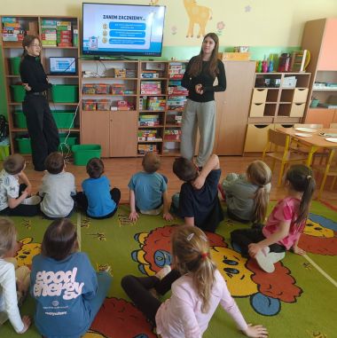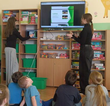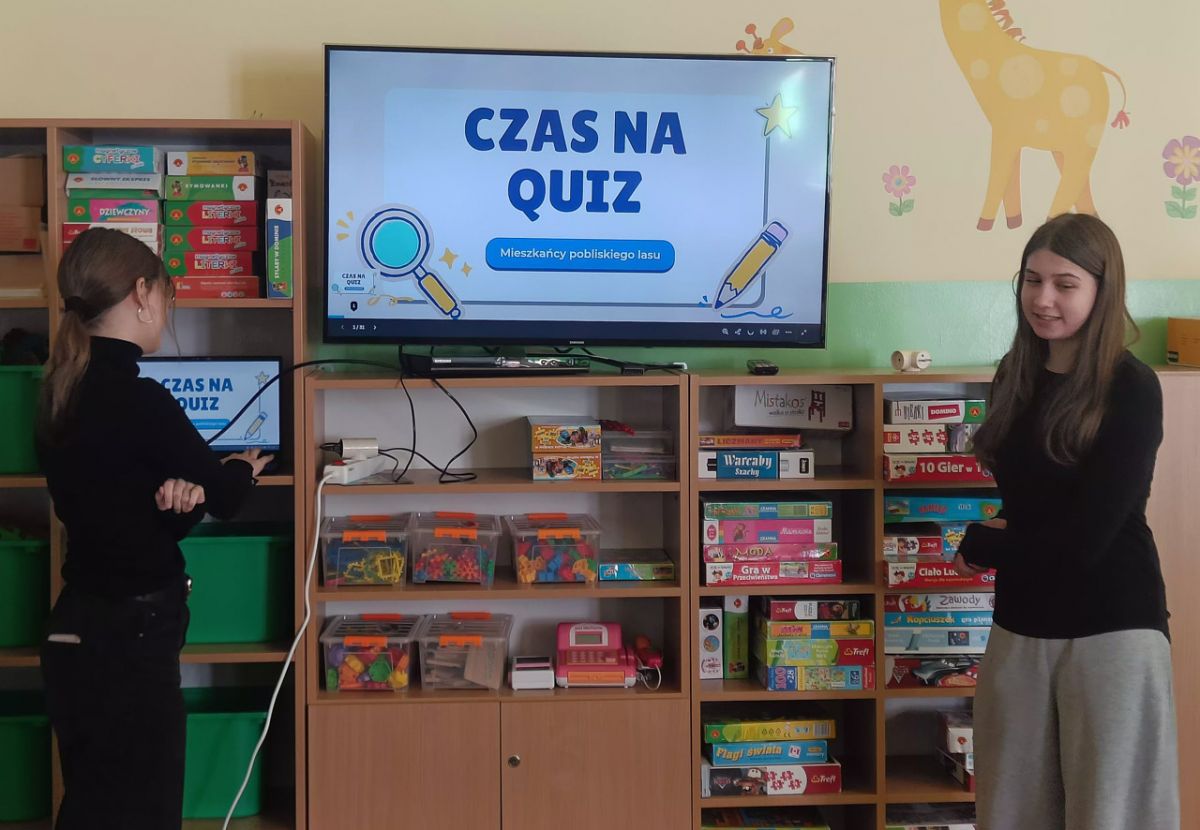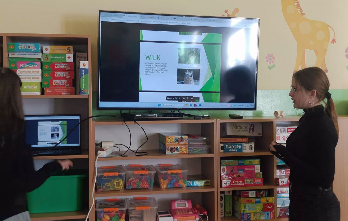 Dwie uczennice ZSP w Przybysławicach – Iga i Laura – w ramach wolontariatu zaprezentowały w grupie VI własnoręcznie przygotowaną prezentację multimedialną o zwierzętach z pobliskiego lasu. Były ciekawe informacje, opisy i piękne ilustracje, a całość zakończył quiz sprawdzający wiedzę przedszkolaków. Dziewczynki wykonały także z dziećmi pracę plastyczną – liska z papierowych talerzyków. Dziękujemy za zaangażowanie, pomysłowość i wspólnie spędzony czas.