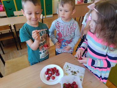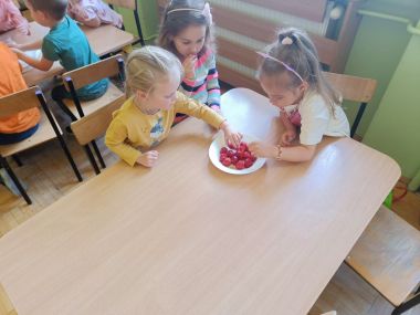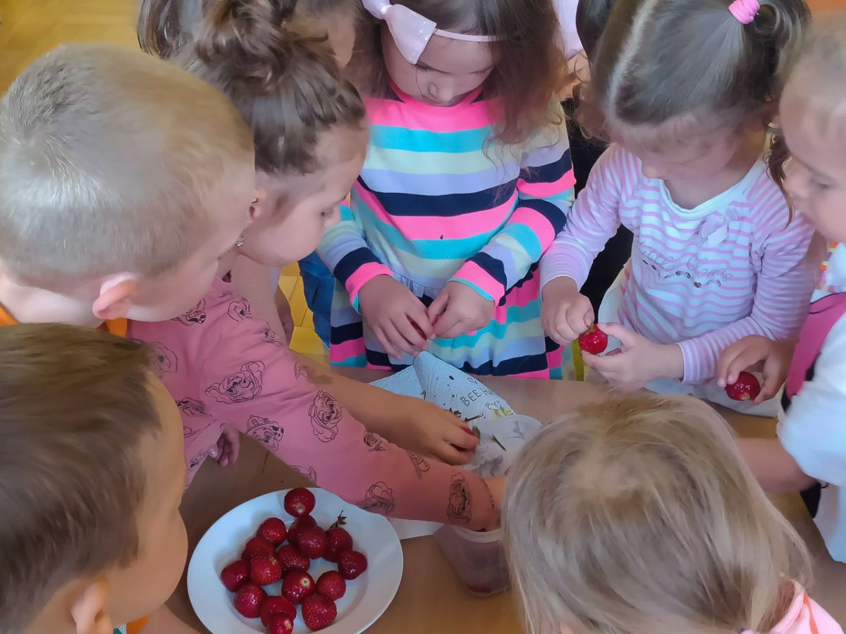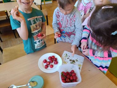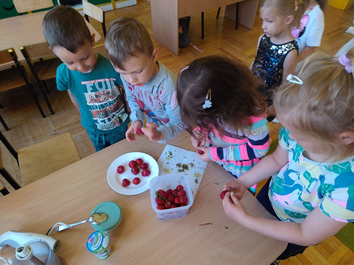 Na ostatnich zajęciach kulinarnych Grupa II przygotowała koktajl truskawkowy. Wspólnie oczyściliśmy truskawki z szypułek i blendowaliśmy dodając jogurt i cukier. A na końcu najsmaczniejsza część zajęć - degustacja :)