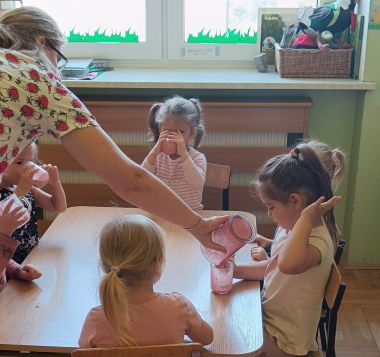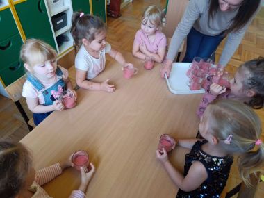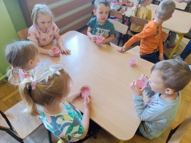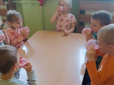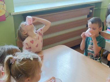 Było radośnie, pysznie i zdrowo, po koktajlu ani śladu- na buziakach zostały tylko różowe wąsiki :)
