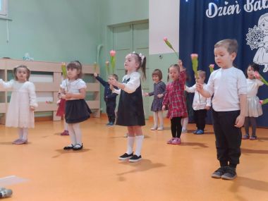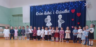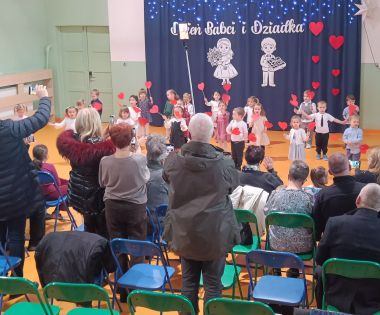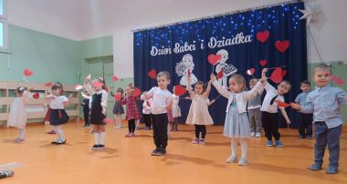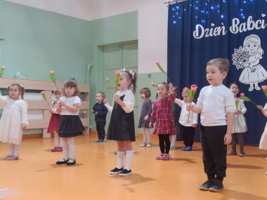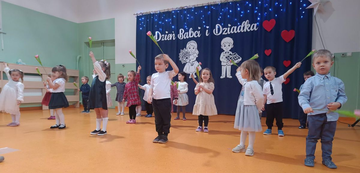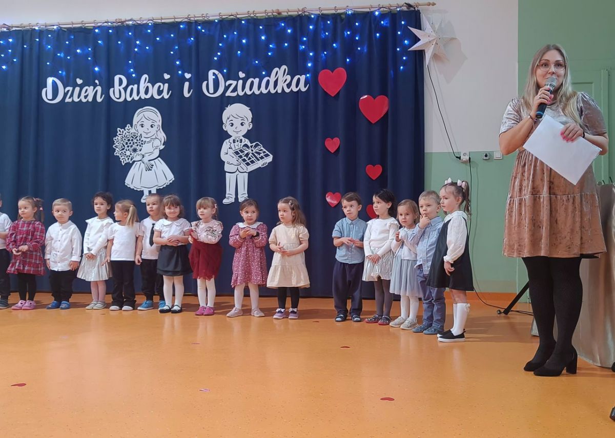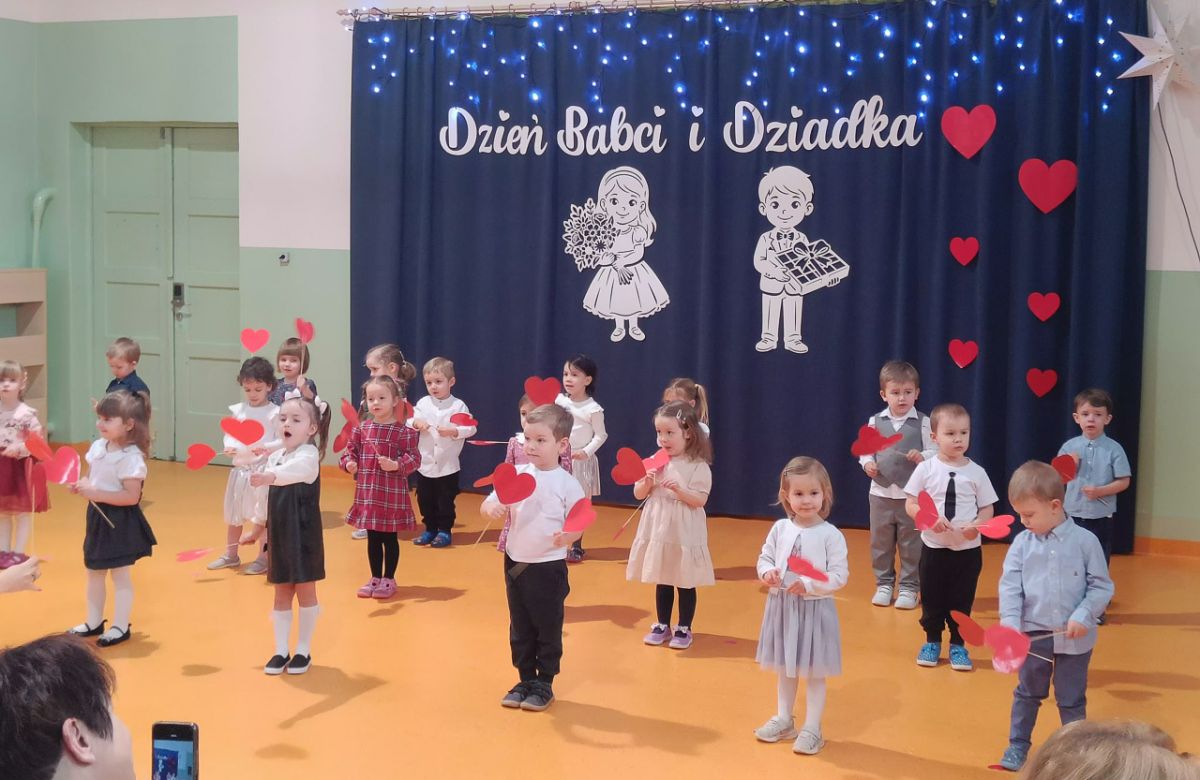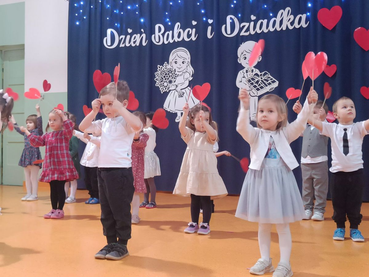 Grupa najmłodsza, trzylatków, z wielkim zaangażowaniem przygotowała piękny występ dla Babć i Dziadków z okazji ich święta. Dzieci zaprezentowały urocze piosenki i wierszyki, wkładając w nie całe swoje serduszka. Choć było to dla nich duże przeżycie, mali artyści wykazali się ogromną odwagą i radością ze wspólnego występu.