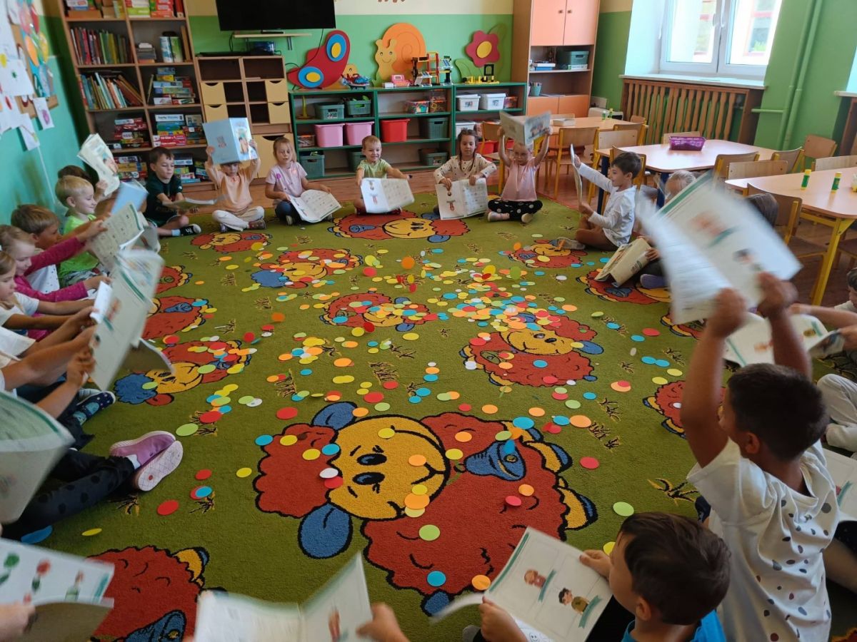 Nasze Przedszkolaki tego dnia przyszły ubrane w grochy, kropki i groszki. Przypominaliśmy sobie historię dziewczynki Vashti i tak jak ona odkrywaliśmy w sobie nasze talenty. Motywem przewodnim w dzisiejszych zabawach i pracach plastycznych była kropka, dziś także każdy przedszkolak opowiadał o swoich najcenniejszych dla siebie talentach.