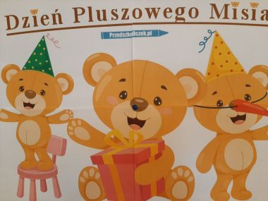 W dniu 25.11.2022r. przedszkolaki z naszej grupy uczestniczyły w obchodach Światowego Dnia Pluszowego Misia. Każde dziecko przyszło do przedszkola ze swoim "milutkim przyjacielem". Można było zobaczyć misie małe, średnie, duże, brązowe, różowe, białe, niebieskie ... Wszystkie były śliczne i wyjątkowe. Poznaliśmy historię pluszowego misia związaną z prezydentem Theodorem Rooseveltem. Dowiedzieliśmy się także czym pluszowy miś różni się od niedźwiedzia. Dzieci miały okazję zatańczyć ze swoim misiem oraz brały udział zabawach ruchowych z misiem. Dzieci wykonywały różne prace plastyczne. Przedszkolaki poznały również różne bajki o misiach.