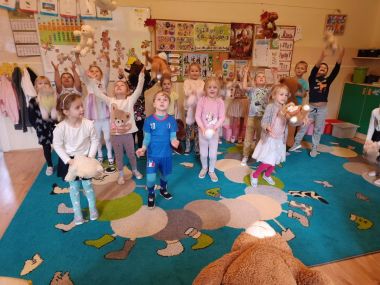 25 listopada świętowały w Dzień Pluszowego Misia. Wszystkie pluszaki i te duże i te małe miały swoje święto, które dzieci hucznie obchodziły. Było mnóstwo zabawy, radości, tańców nie zabrakło również życzeń przekazanych na „ uszko” oraz portretów misiów. Dzień zakończyliśmy niespodziankami, śpiewem i integracyjnymi grami, zabawy było co nie miara.