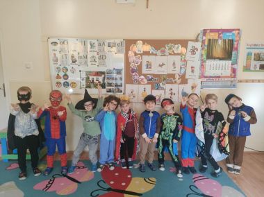5 listopada obchodziliśmy Międzynarodowy Dzień Postaci z Bajek. Dzieci przebrały się za różne postaci z bajek. Był korowód bajkowy, były zagadki, były zabawy matematyczne z postaciami z bajek, były tańce i pamiątkowe zdjęcia 😄