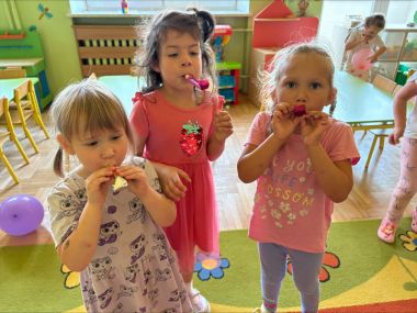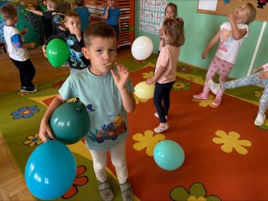 Z tej okazji na naszych przedszkolaków czekało wiele atrakcji – wspólne zabawy, tańce z balonami i gry z chustą animacyjną. Nasze dzieciaki puszczały i łapały bańki mydlane w ogrodzie przedszkolnym. Nie zabrakło również czegoś słodkiego, co sprawiło im wiele radości.