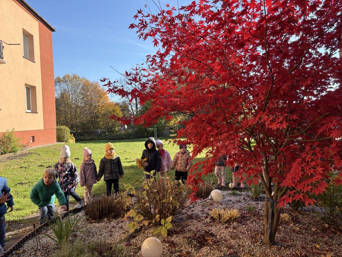 W ubiegłym tygodniu nasze przedszkolaki wybrały się na jesienny spacer, aby obserwować zmiany zachodzące w przyrodzie. Dzieci z zaciekawieniem przyglądały się kolorowym liściom i innym darom jesieni. Rozpoznawały drzewa, tworzyły jesienne bukiety i uczyły się, jak rozróżnić dąb od klonu.