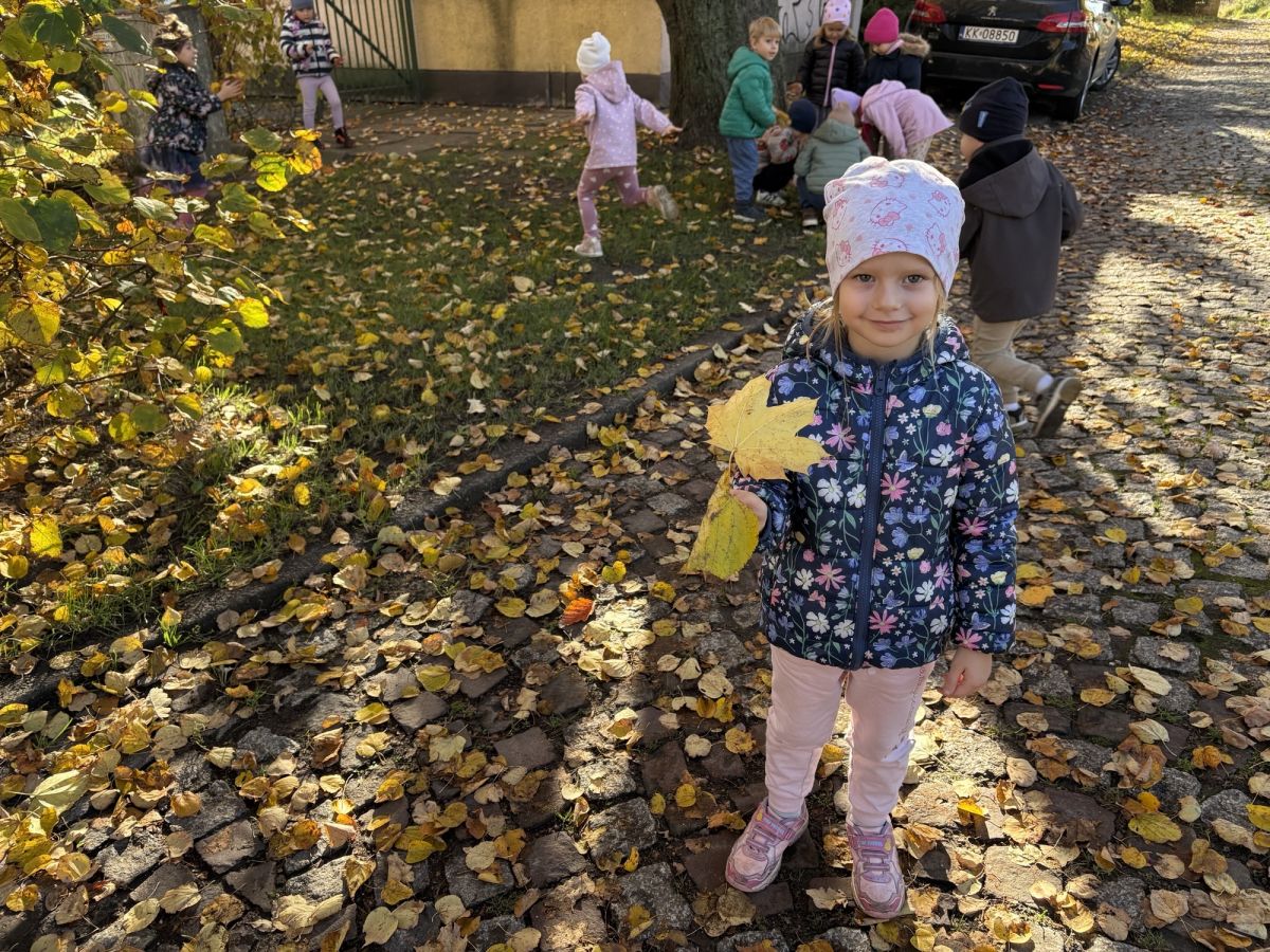Podczas spaceru nie zabrakło też ruchu i zabawy – dzieci z radością biegały między drzewami na Os. Wojskowym, słuchały szelestu liści pod stopami i szukały śladów zwierząt przygotowujących się do zimy.