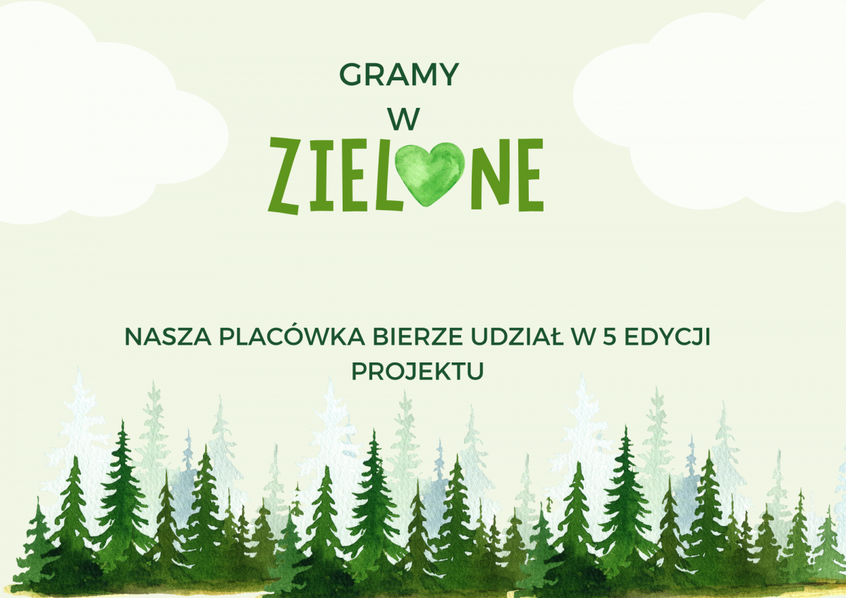 Przedszkolaki z naszego przedszkola biorą aktywny udział w Ogólnopolskim Projekcie "Gramy w Zielone", którego głównym celem jest uświadomienie dzieciom, jak ważna jest natura, ekosystem i jak nasze działania wpływają na środowisko.