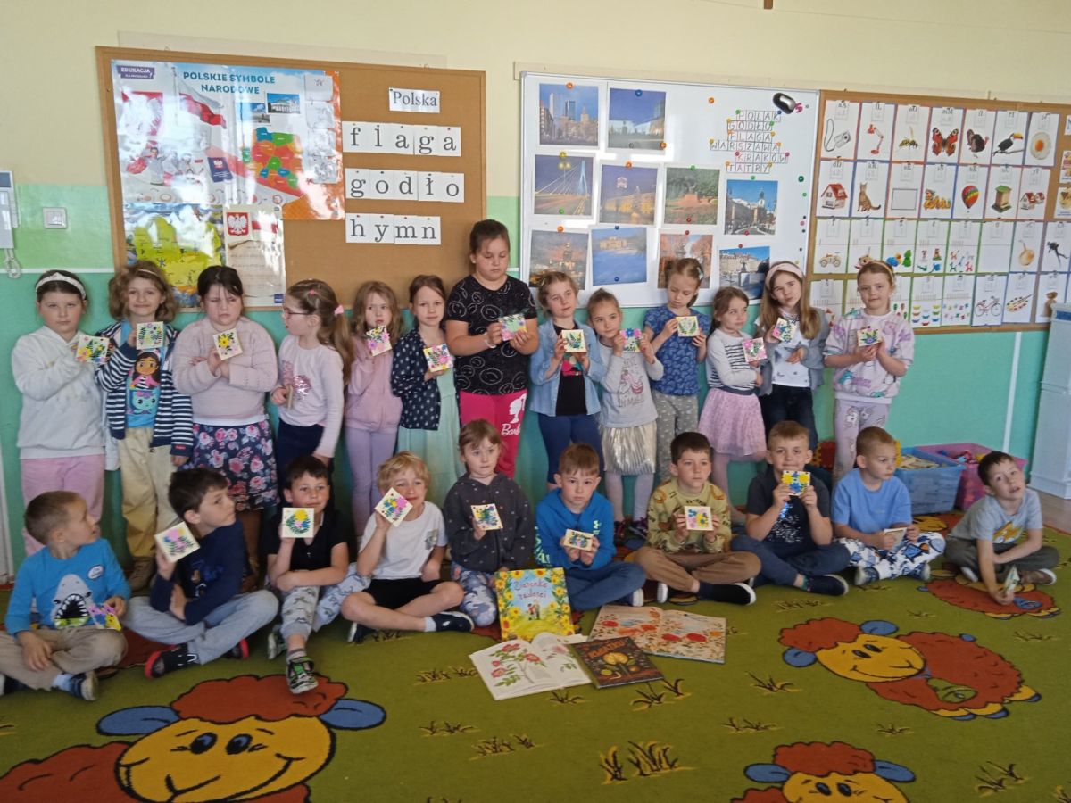28 kwietnia odwiedziła nas pani bibliotekarka z Biblioteki Publicznej w Wegrzcach. W ramach akcji "Książka i róża" dzieci oglądały książki o kwiatach oraz wysłuchały opowiadania pt. "Ziarenko radości". Następnie wykonały piękne prace plastyczne.