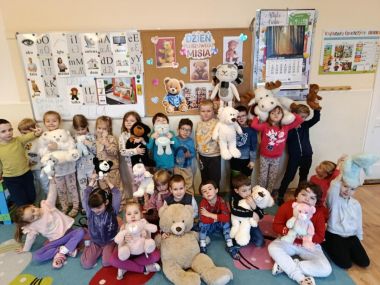 25 listopada obchodziliśmy ,,Dzień Pluszowego Misia". Wraz z naszymi ulubionymi pluszakami bawiliśmy się w ,,misiowe" zabawy. Poznawaliśmy różne gatunki niedźwiedzi, uczyliśmy się liczyć, śpiewaliśmy ,,misiowe'' piosenki i wyklejaliśmy misie z papieru.