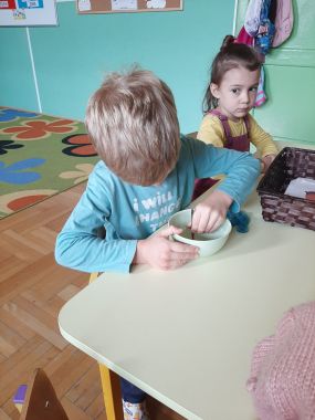 W miesiącu wrześniu w grupie VII dzieci miały okazję poznać tajniki metody Montessori. Dzieci bardzo chętnie „pracowały” z różnymi ciekawymi materiałami ćwicząc m.in. sprawność motoryki małej, cierpliwość (czekając na swoją kolej bo materiał jest tylko jeden), umiejętność zapinania i odpinania guzików czy np. chwyt pęsetowy.