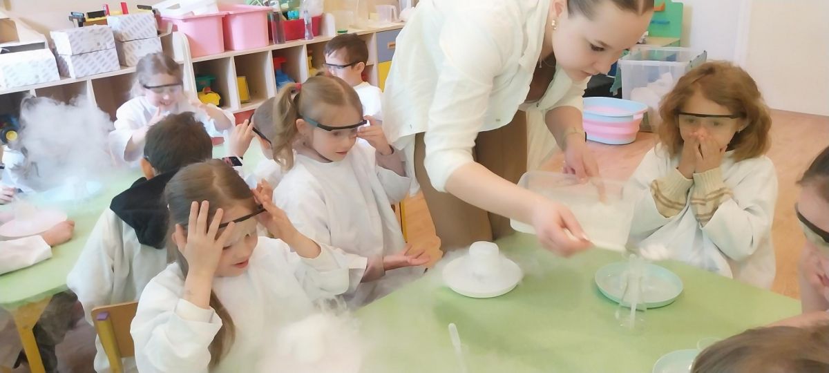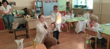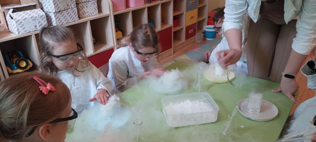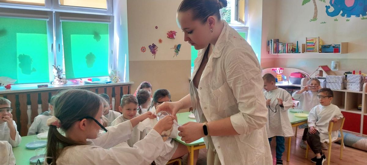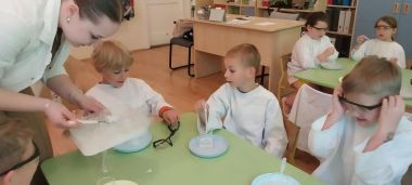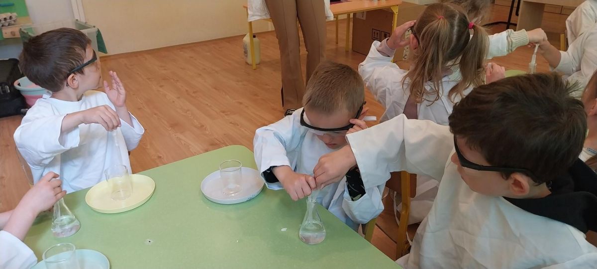 W piątek 9 maja w przedszkolu odbyły się warsztaty chemiczne, w których uczestniczyły najstarsze grupy przedszkolne. Dzieci miały okazję eksperymentować, samodzielnie działać i wysnuwać chemiczne wnioski z obserwacji.