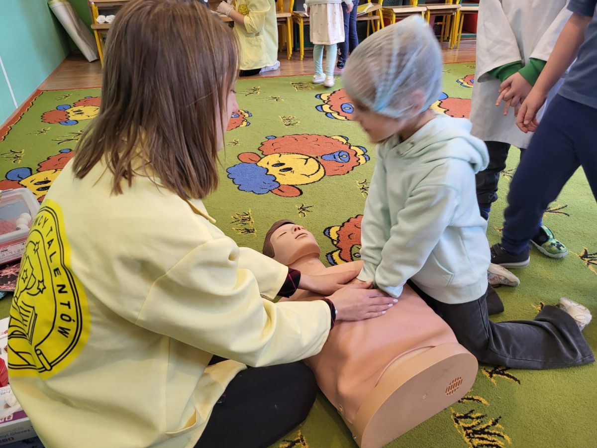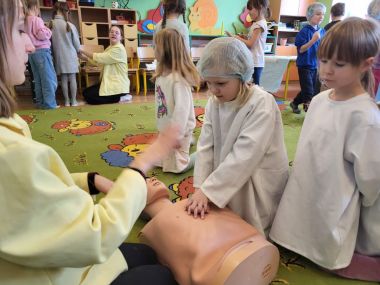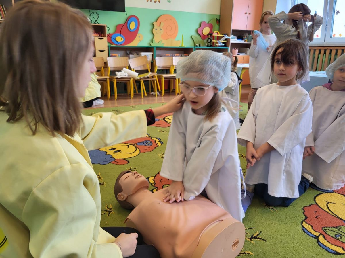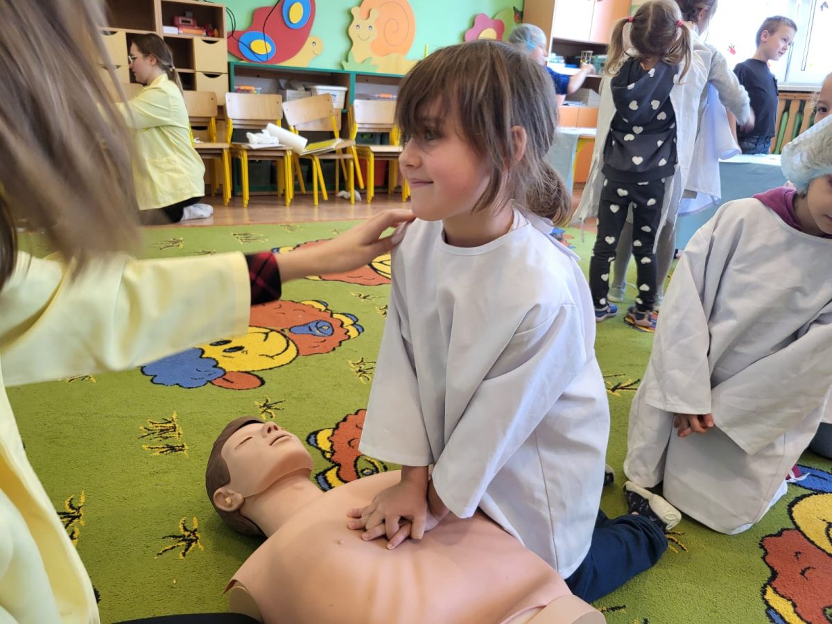 Warsztaty medyczne to doskonała okazja, aby dzieci zdobyły podstawową wiedzę o głównych organach wewnętrznych oraz na temat udzielania pierwszej pomocy. 24 listopada nasza grupa uczestniczyła w takich zajęciach, podczas których sześciolatki zobaczyły, jak wygląda wnętrze człowieka na modelu. Uczyły się jak opatrzyć ranę, użyć bandaża, wezwać pomoc czy wykonać resuscytacje na fantomie. Warsztaty wywołały wiele emocji u dzieci.